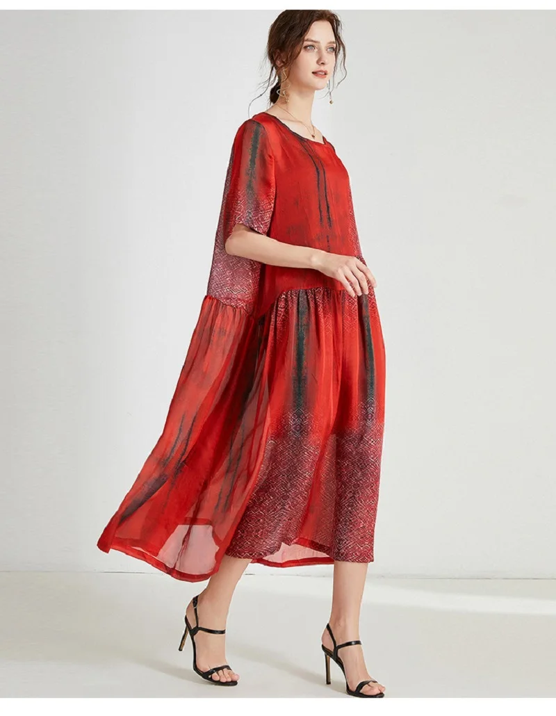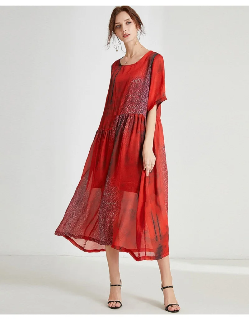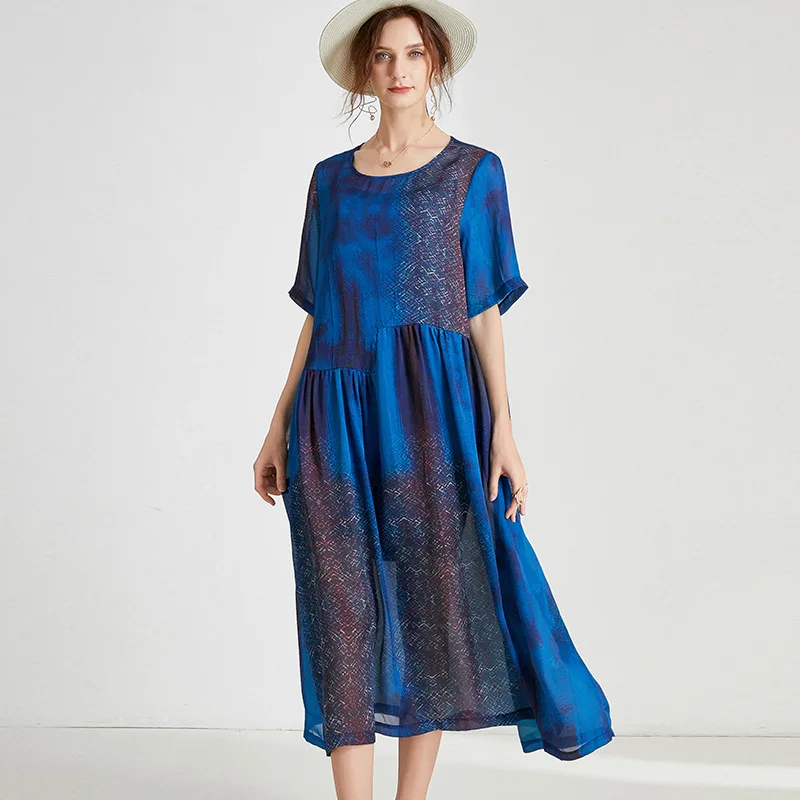 2020Loose long beach dress silky shot sleeves vacation two pcs dress empire holidays long maxi dress plus size longos vestidos
