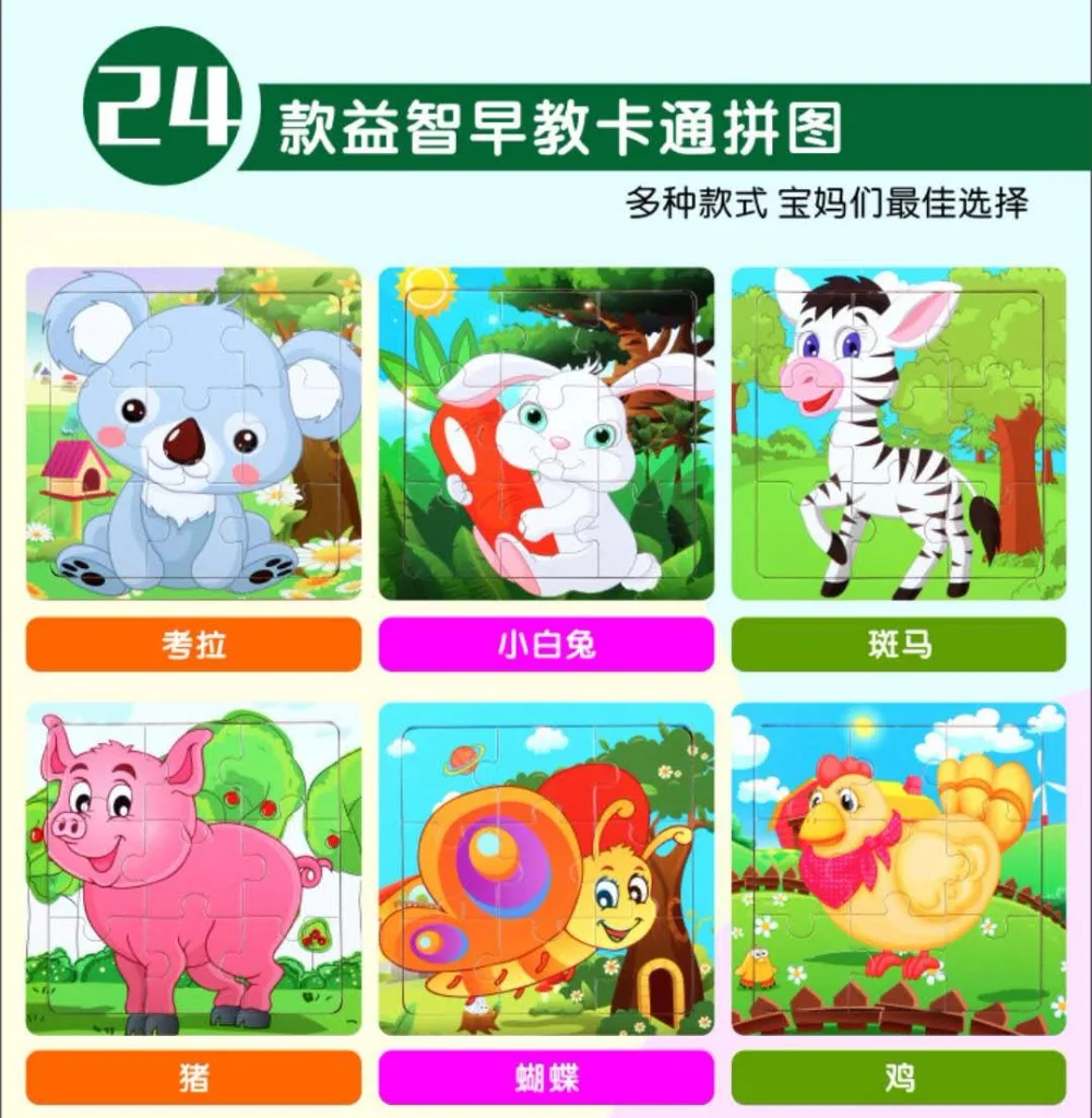 24 Style 3D Puzzles Jigsaw Wooden Toys For Children Cartoon Animal Traffic Puzzles Intelligence Children Early Educational Toys