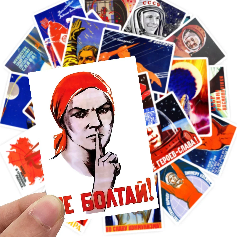 25Pcs Russian Propaganda Poster the Space Race Poster Stickers USSR CCCP Stickers for Collection Laptop Luggage Phone Decals USD 2.84 / pack /lot 1