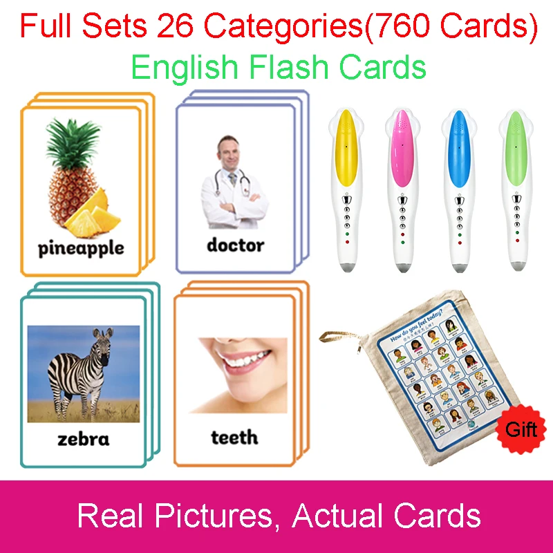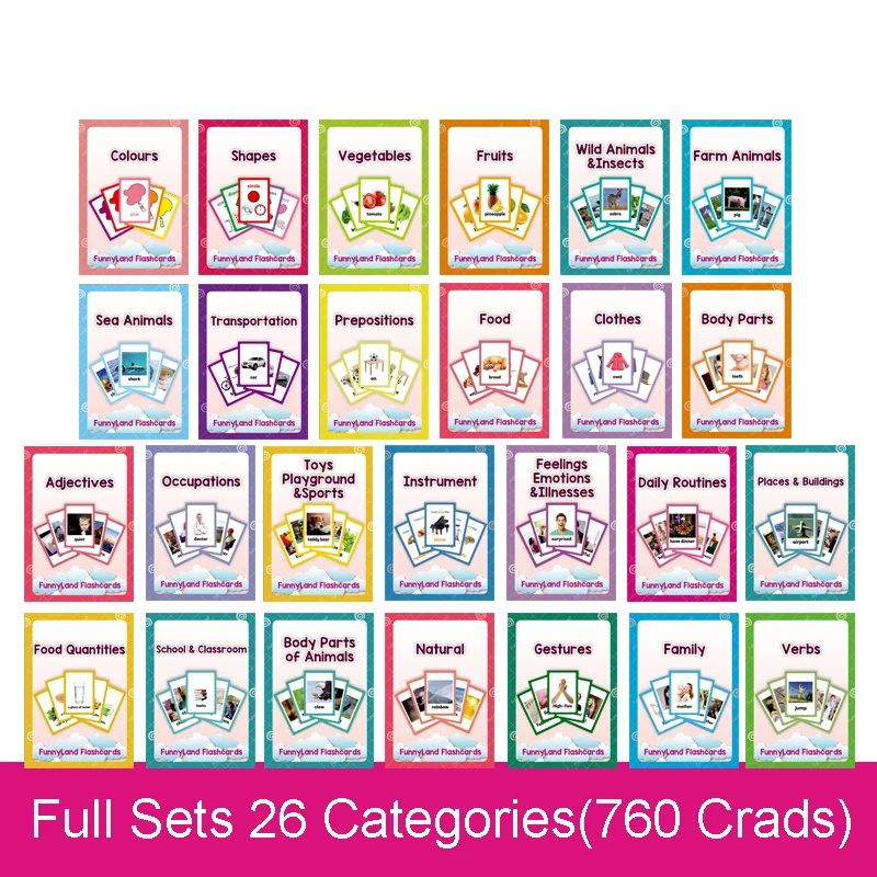 26 Categories 760 Cards Kids Montessori Learn English Flash Card Puzzle Games Educational Toys For Children Juguetes Educativos