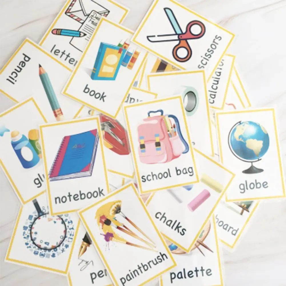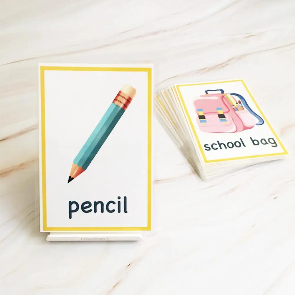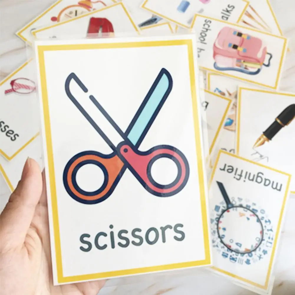 The card material uses brand new material FSC double copper card, double-sided color printing environmental protection ink, the surface of the card is glazed and waterproof. Easy to store and organize, to avoid the metal ring hurting your child’s hands.