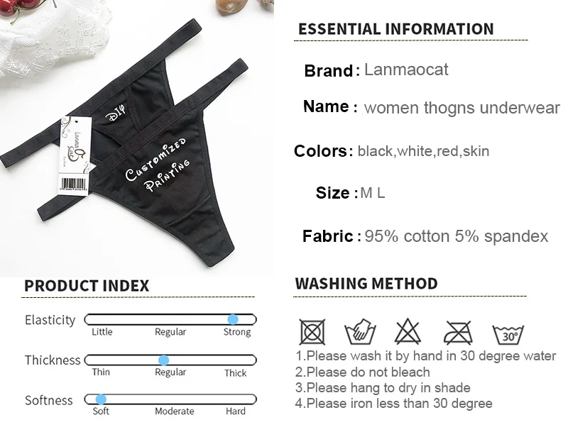 Lanmaocat Women’s Cotton G-string Thong Panties Custom Printing Women Low Waist Panty Underwear Lingerie Plus Size Free Shipping