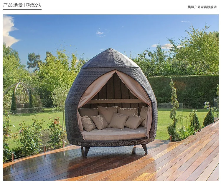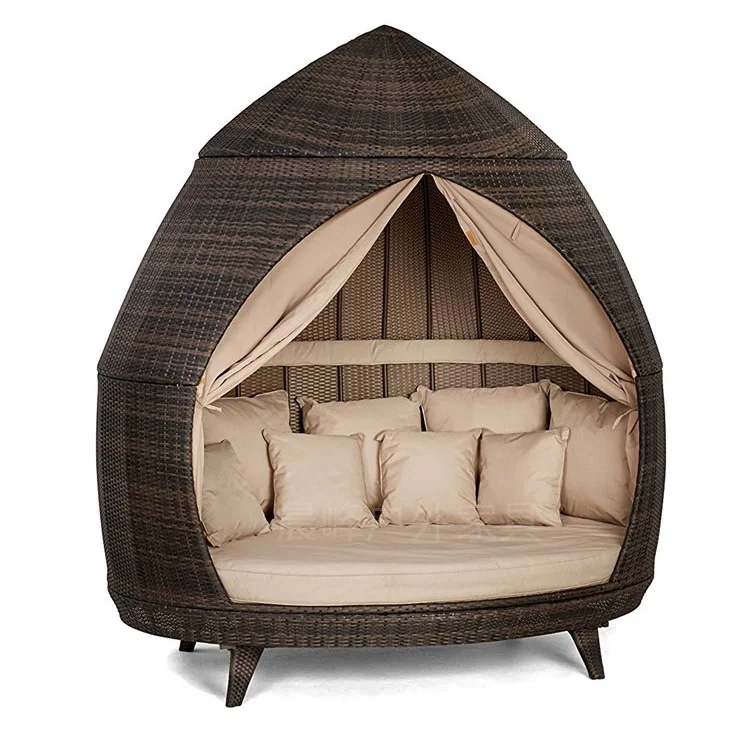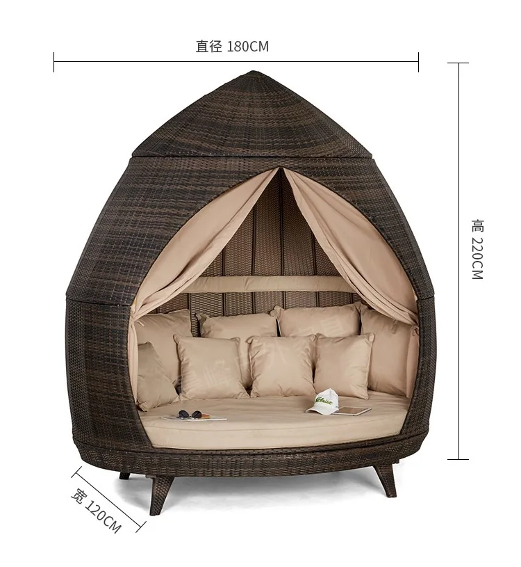 2pcs PACK, Hut Inspired Garden Lounge Bed with Canopy / 2.2m High Alfresco Cottage Cabin / Soft Pillows and Curtain Included