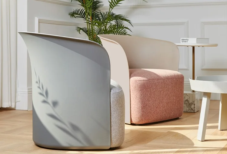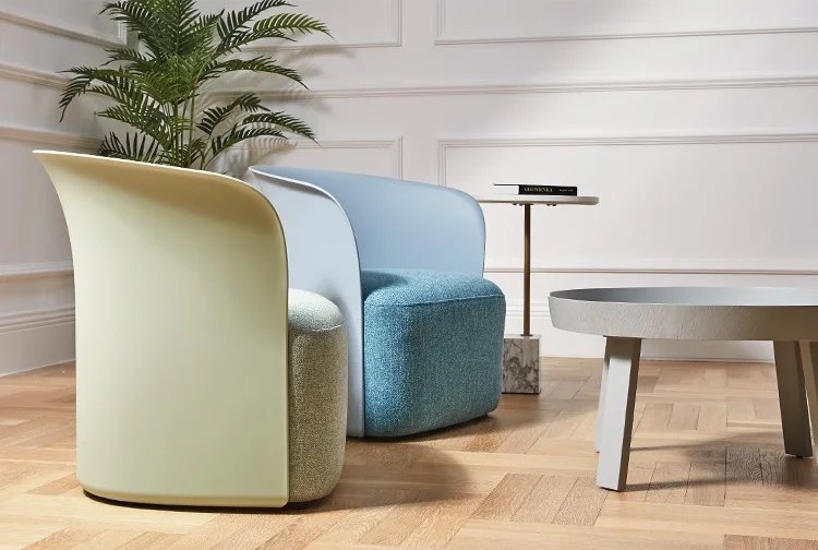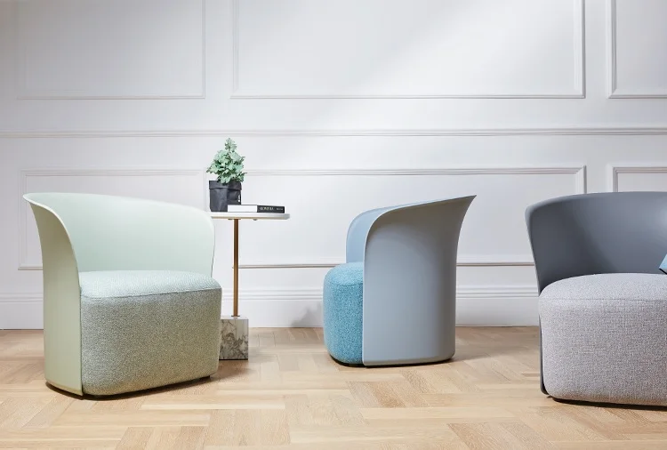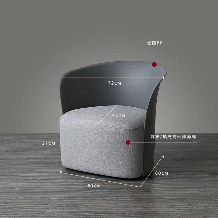 Modern Design Simple Shape Lounge Chair with Plastic Backrest / High Foam Seat Sofa with Linen Upholstery