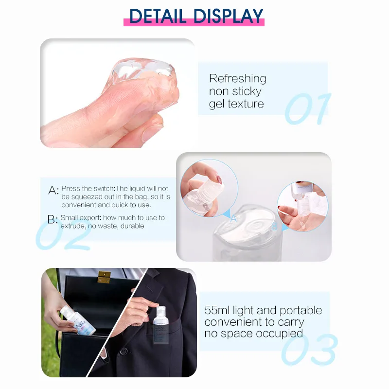 3 pieces 55ml Alcohol Hand Sanitizer Gel Disposable Anti-bacteria virus Waterless Gel Portable Alcohol Disinfecting Hand Wash