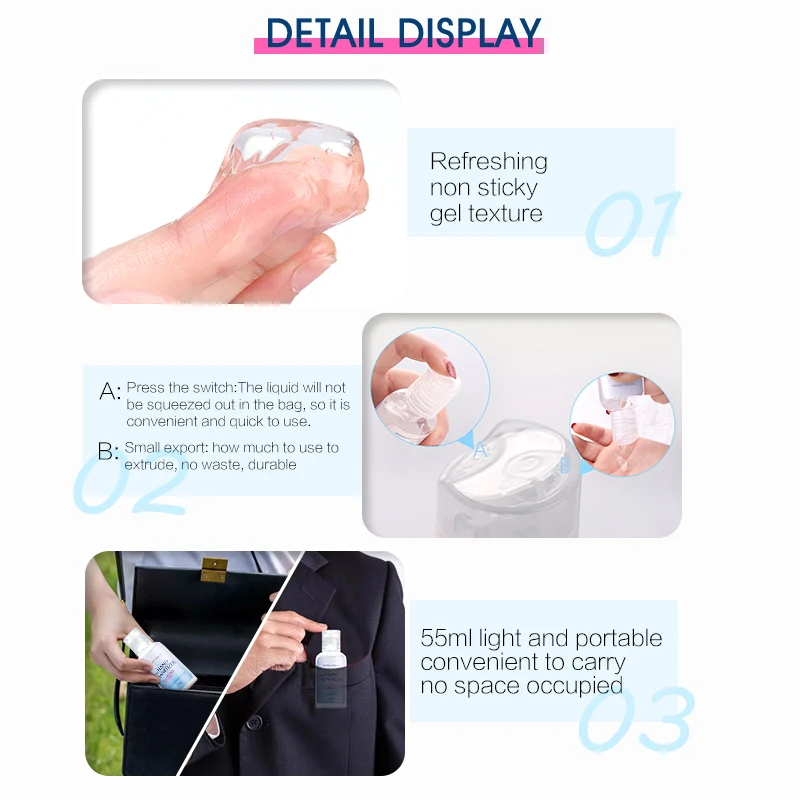 3 pieces 55ml Alcohol Hand Sanitizer Gel Disposable Anti-bacteria virus Waterless Gel Portable Alcohol Disinfecting Hand Wash