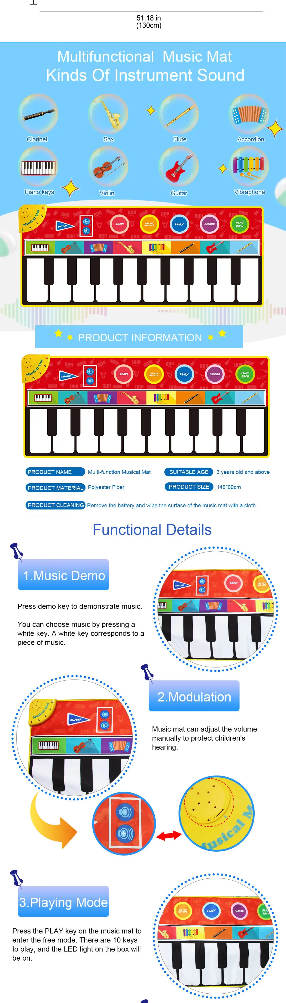 Not only developing children’s sense of touching and feeling,but also geting the pure fun through this mat.