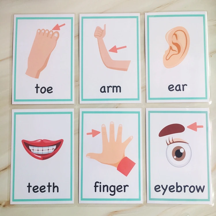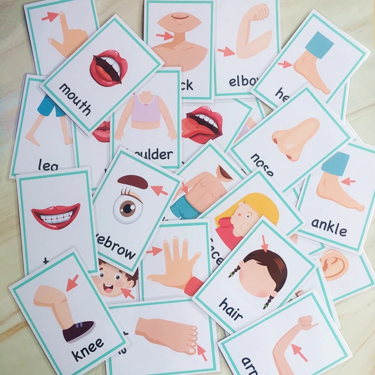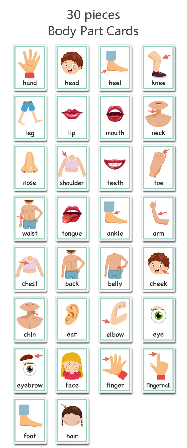 30pcs Body Part English Learning Word Card Games Montessori Baby Flash Cards Educational Toys For Children