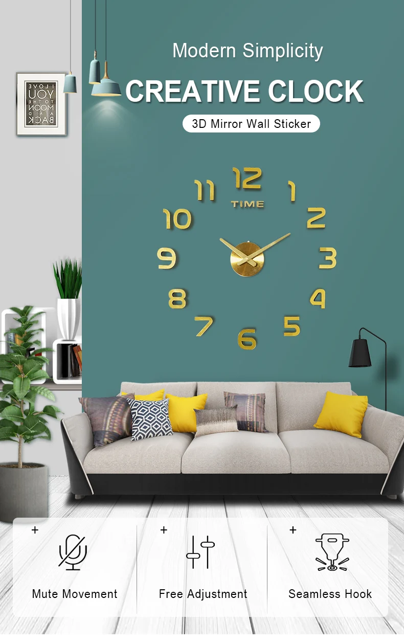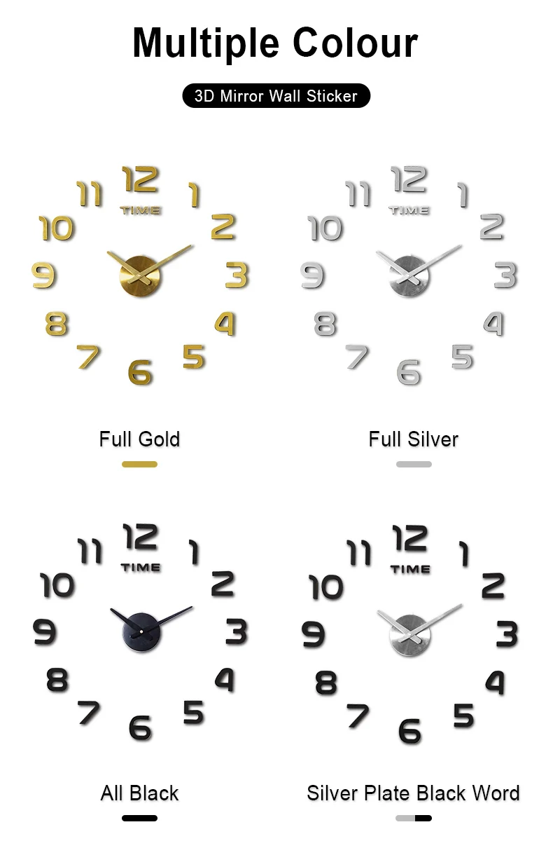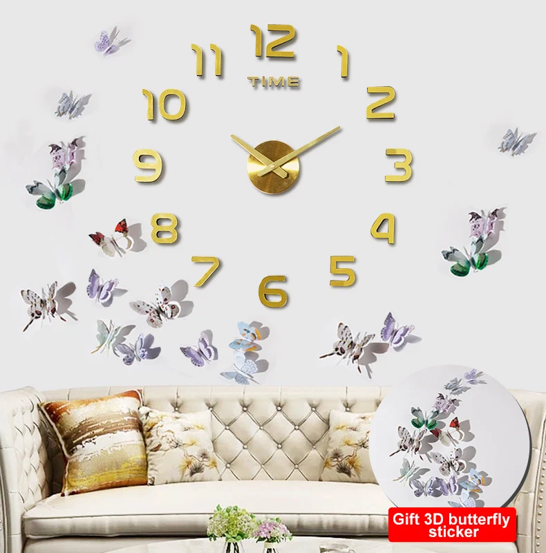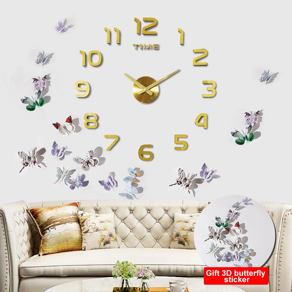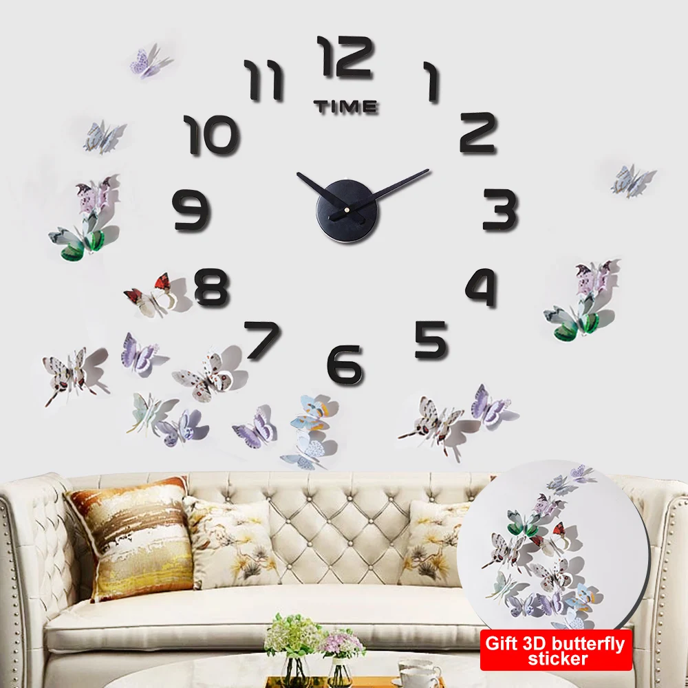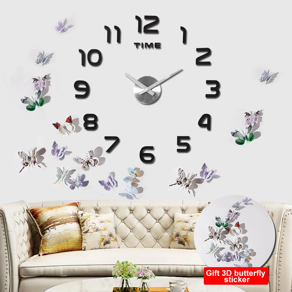 3D Acrylic Clock Mirror Sticker Watch Wall DIY Creative Clock Home Decoration Quartz Clock / Free to send 3D butterfly sticker