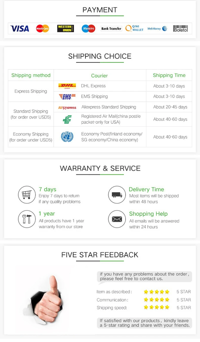 • If you did not receive the product within the guaranteed time( 45 days not including 2-5 day processing) you can request a refund or a reshipment.