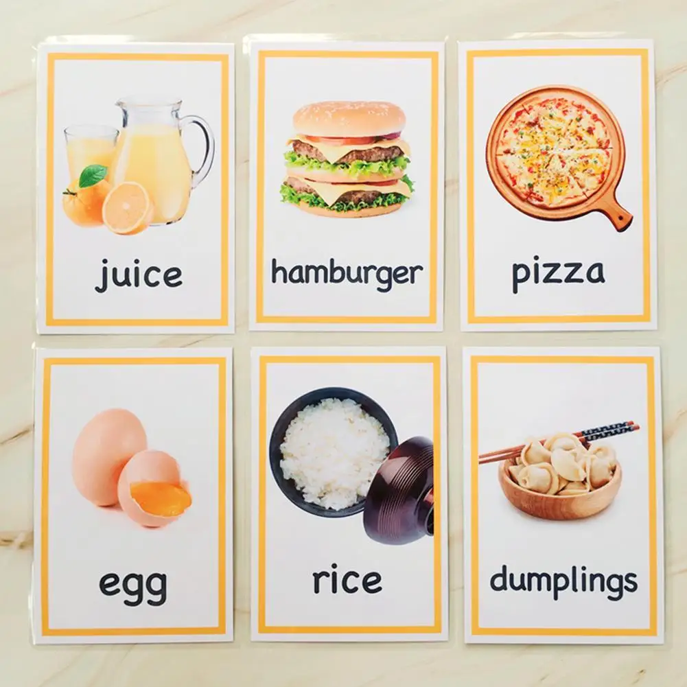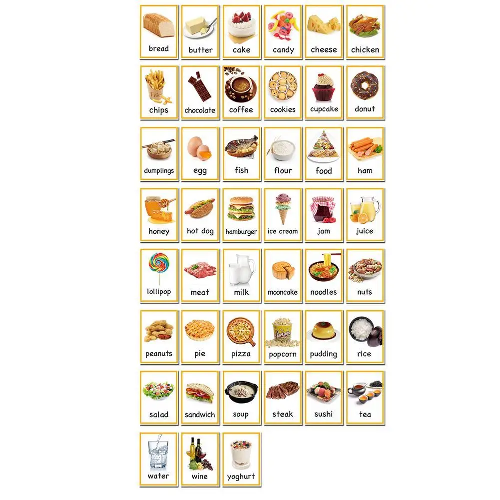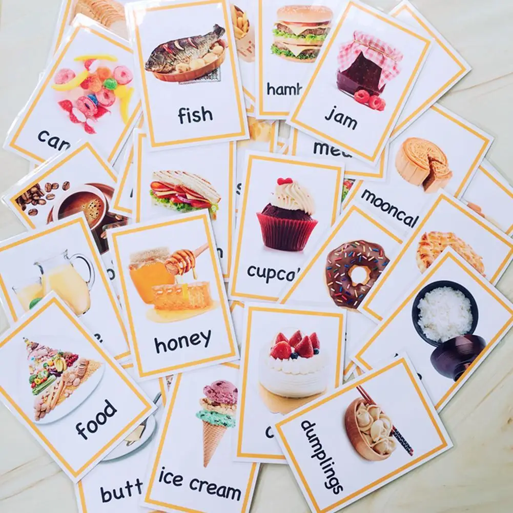 45pcs Food Cards English Flash Card Handwritten Montessori Early Development Learning Educational Toy For Children Kid Gift