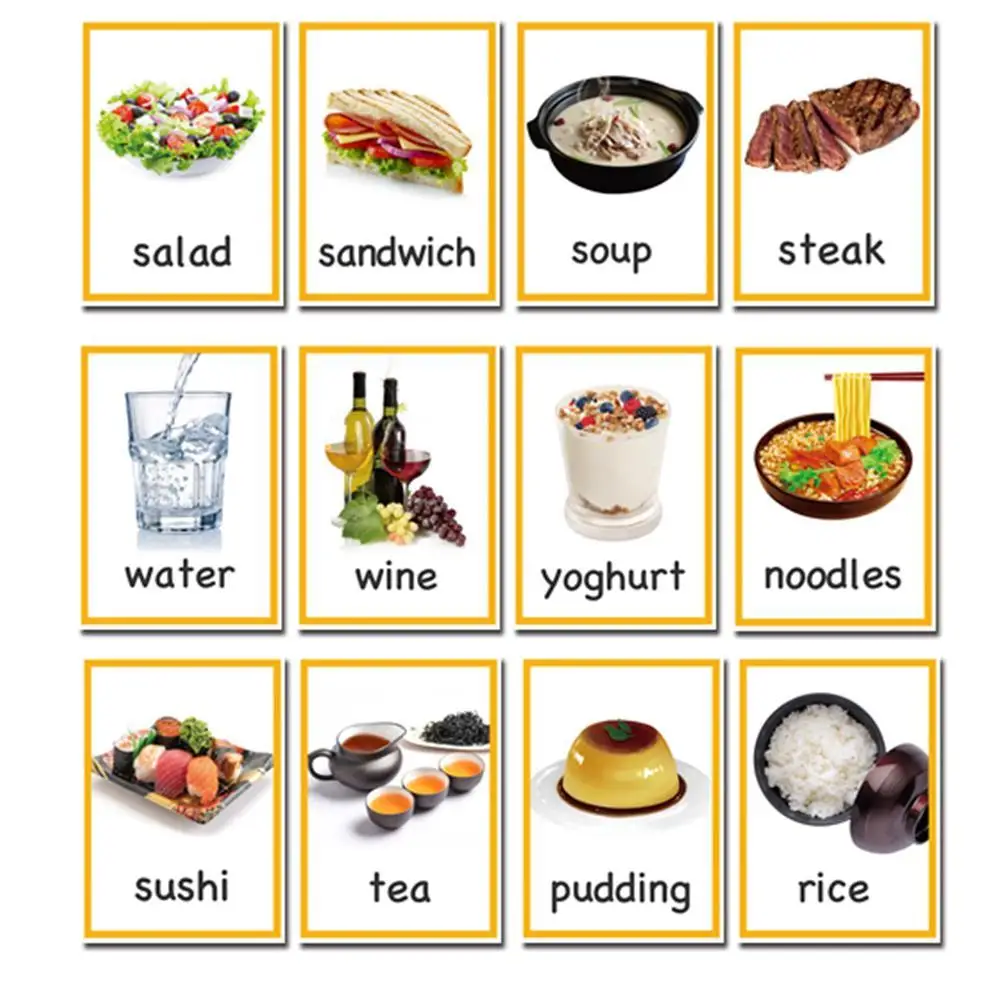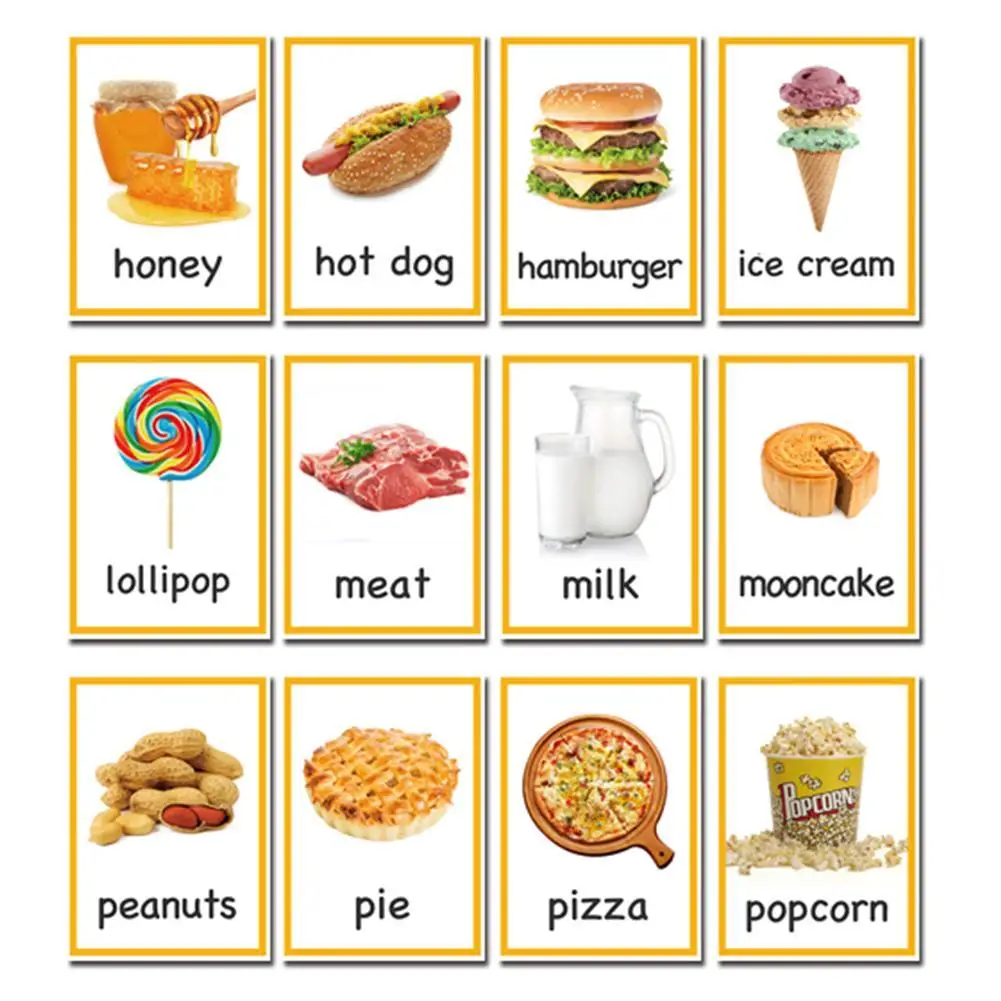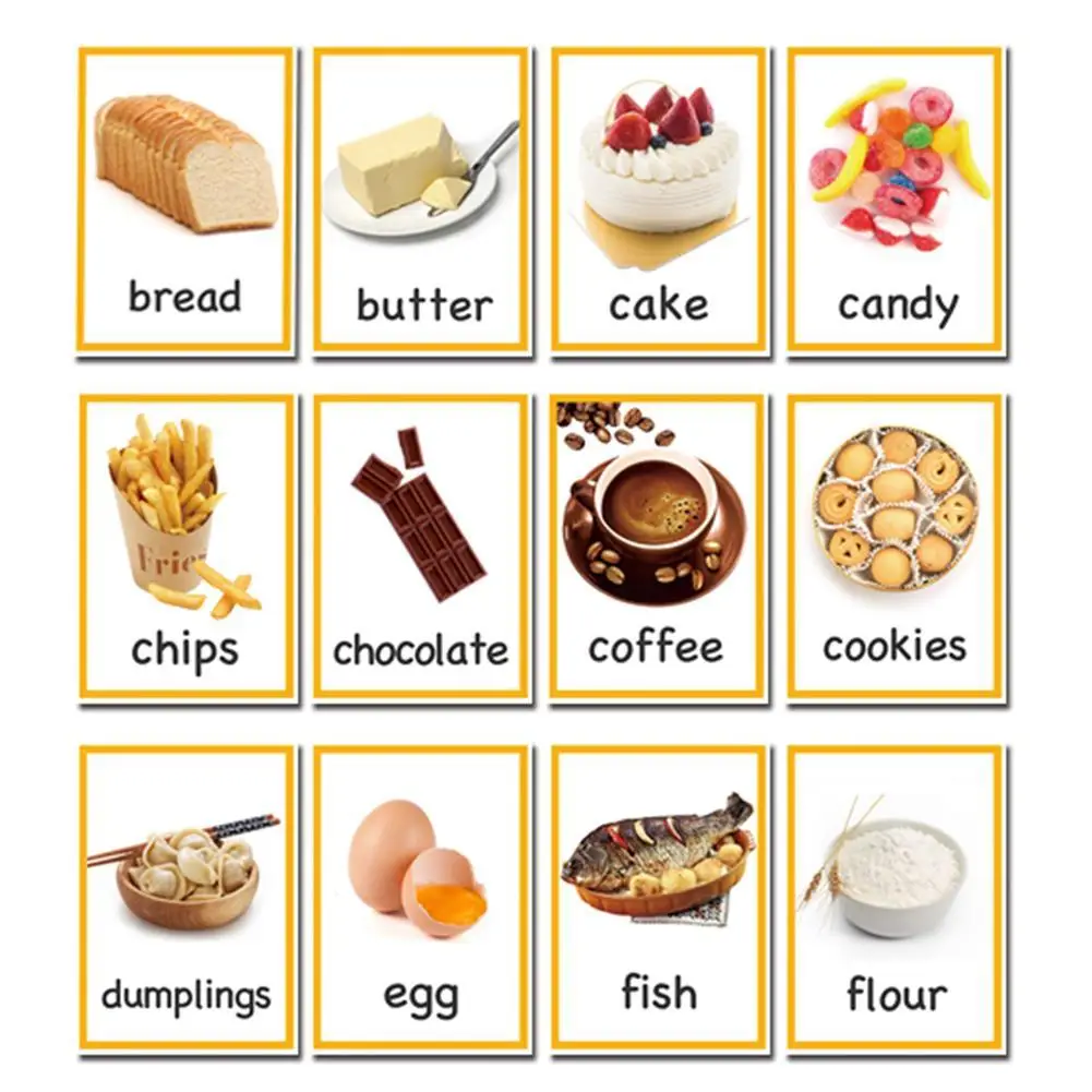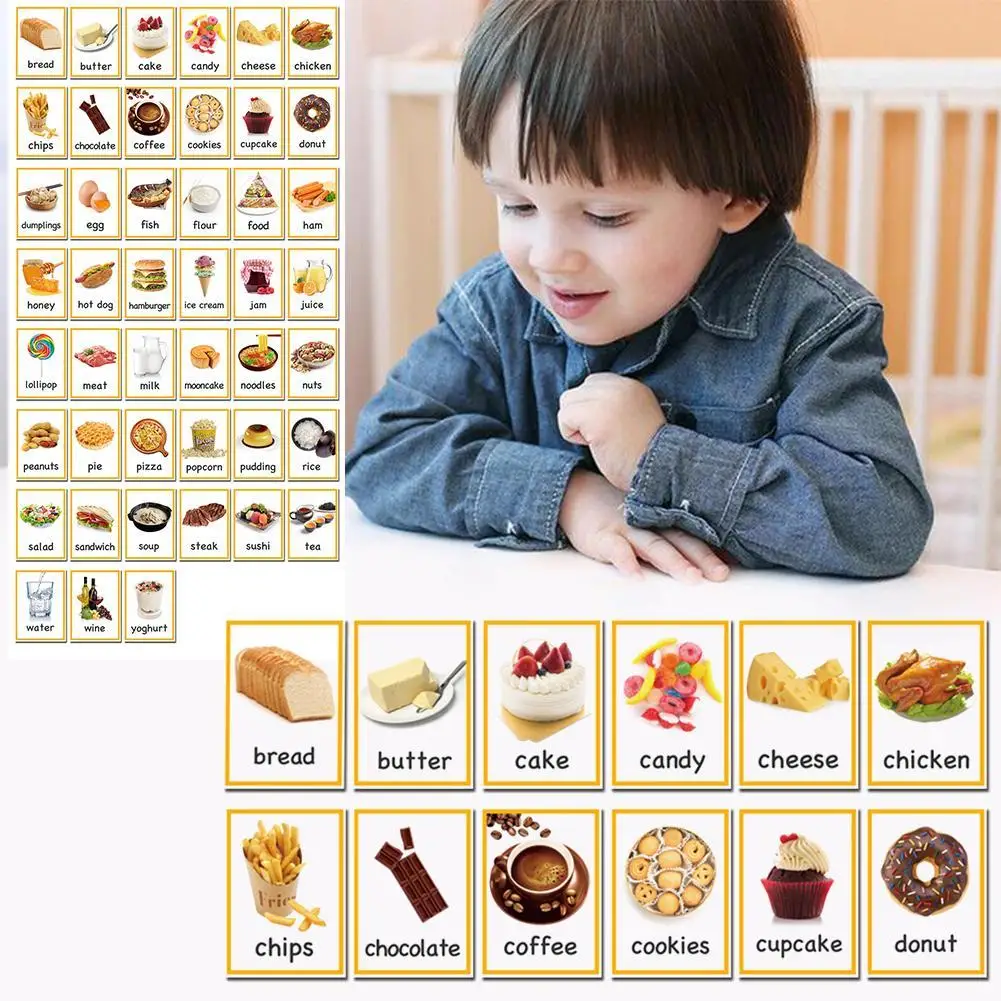 45pcs Food Cards English Flash Card Handwritten Montessori Early Development Learning Educational Toy For Children Kid Gift
