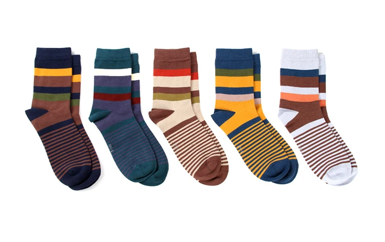 5 Pair/Lot Cotton Men’s Socks Colorful Stripe Socks Fashions Compression Happy Crew Socks Men Big Size 39-45