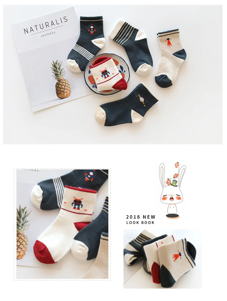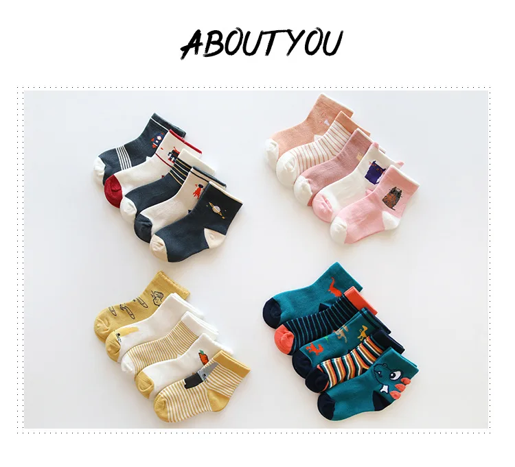 5 pairs autumn winter spring children’s cotton socks student socks floor anti-skid socks boys and girls multi-color sock