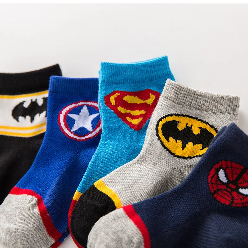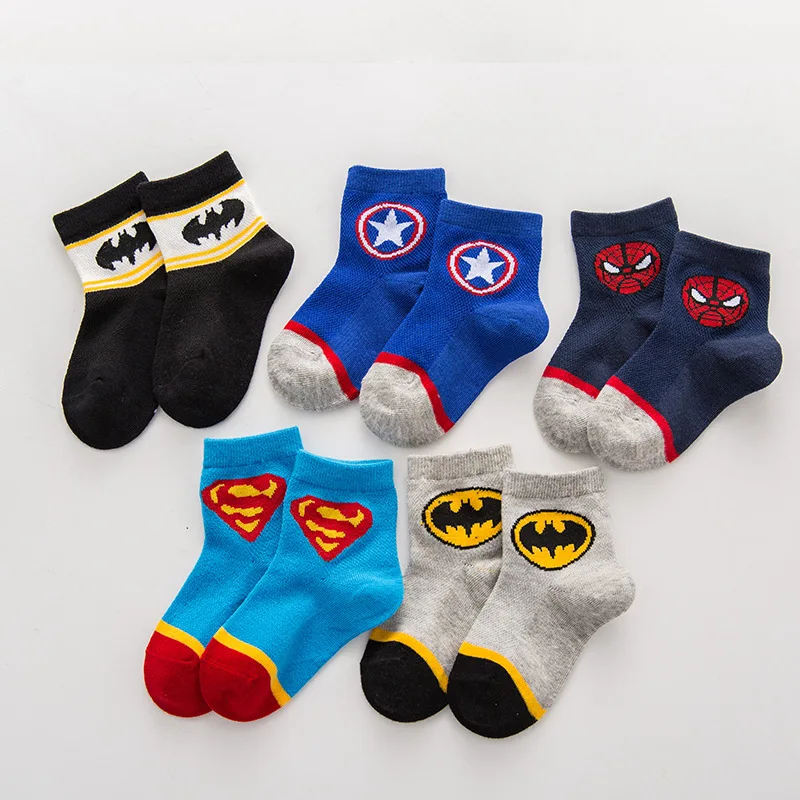 5 Pairs Baby Boy Socks Cartoon Marvel Iron Man Superman Spiderman Batman Super Hero Kid Girl Cotton Socks Summer Thin Breathable