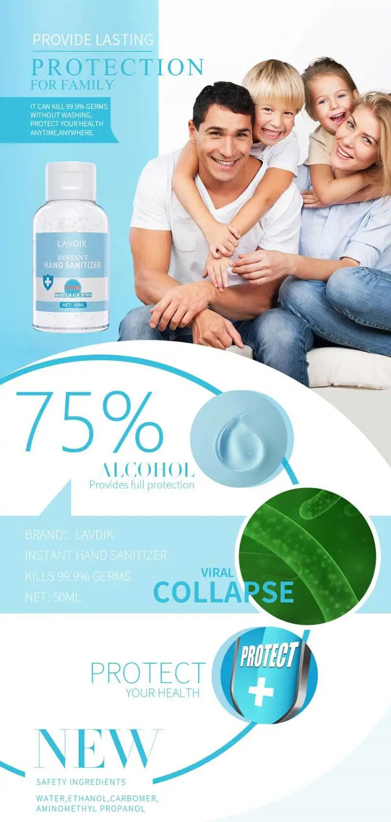Quickly removal dirty stuff on your hands without irritating or drying your skin.Hand sanitizer will make your hands feel smooth and fresh;