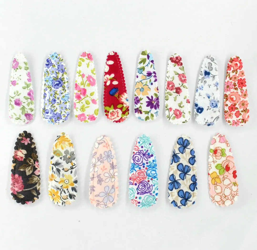 50pcs pack fabric Snap Clip coloful floral Hair clips