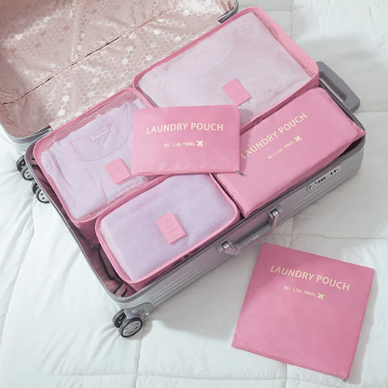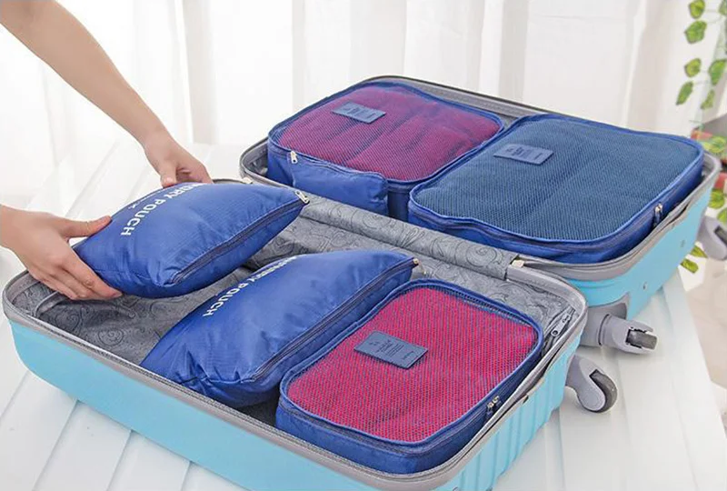 6 Pcs/Set Travel Cubes Bag Men Women Luggage Large Capacity Clothing Storage Packing Bags Waterproof Suitcase Set FB0083