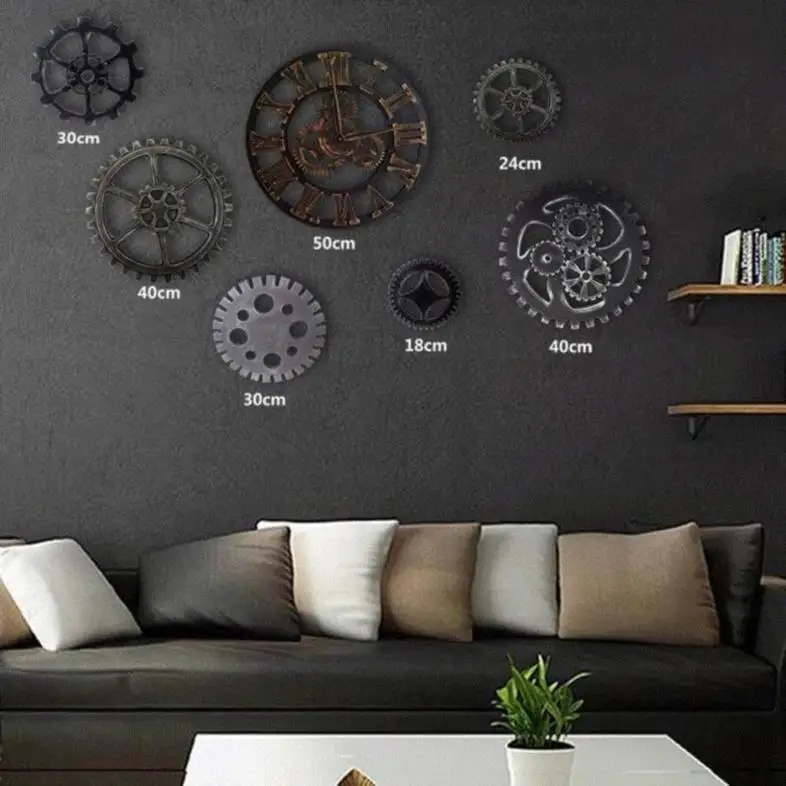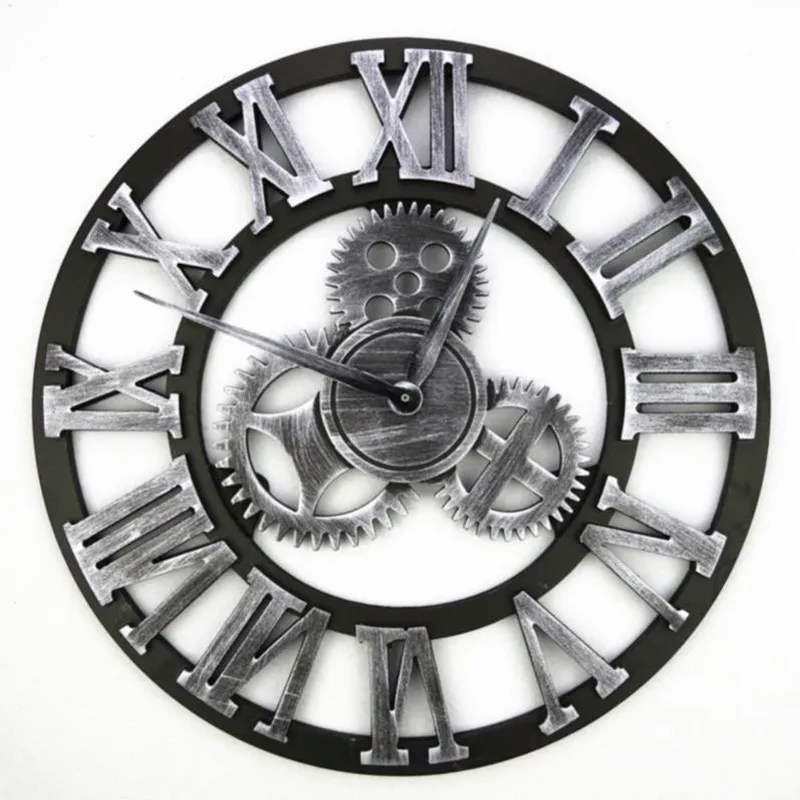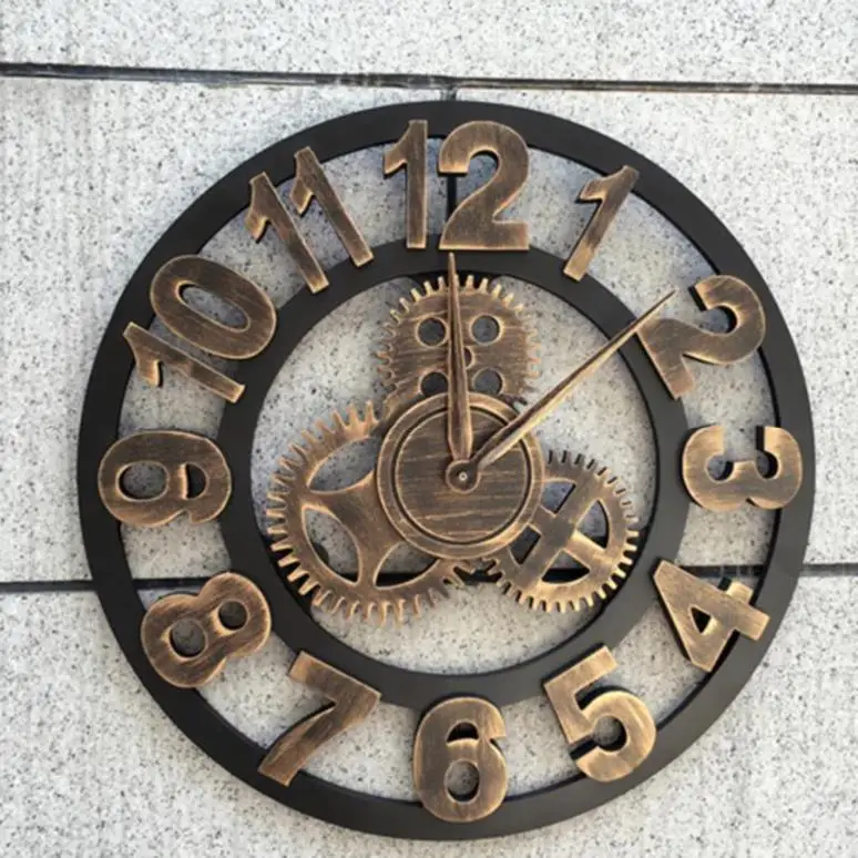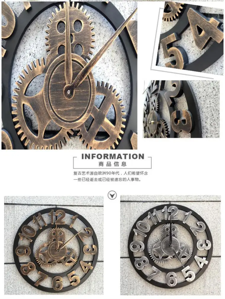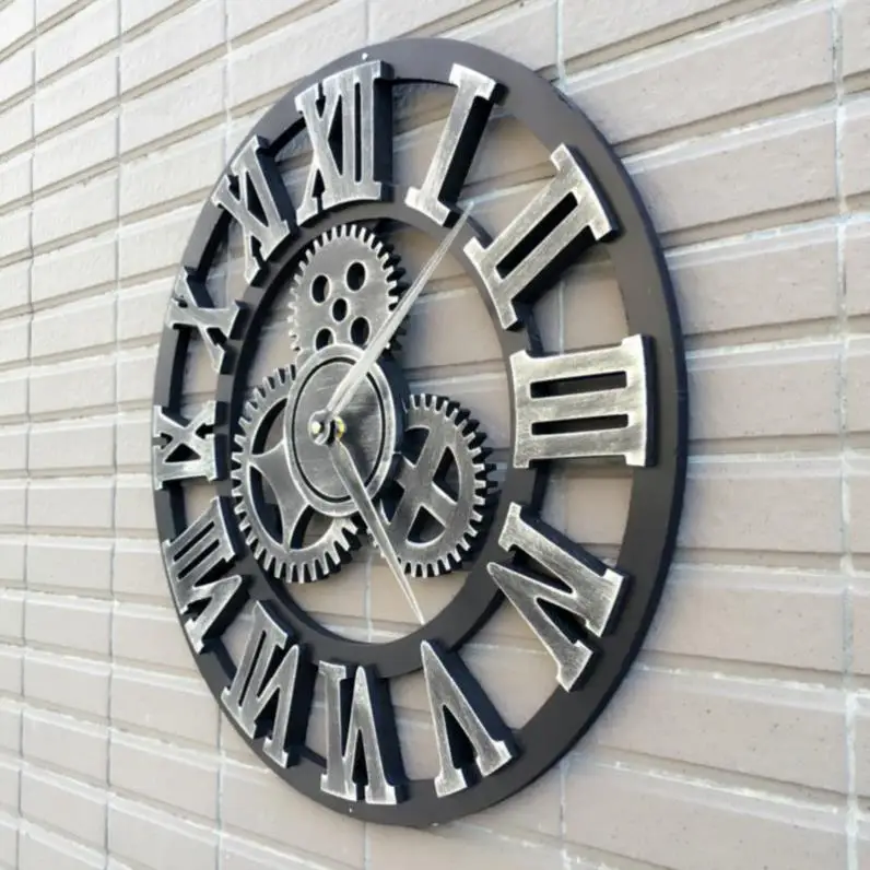 60/80CM Handmade Oversized 3D Retro Rustic Decorative luxury Art Big Gear Wooden Vintage Large Wall Clock 20 Inches R1538