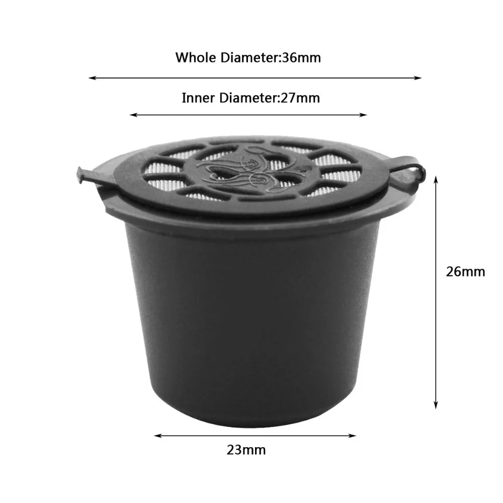 6PCS Reusable Nespresso Coffee Capsules Cup With Spoon Brush Black Refillable Coffee Capsule Refilling Filter Coffeeware Gift