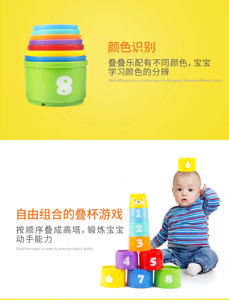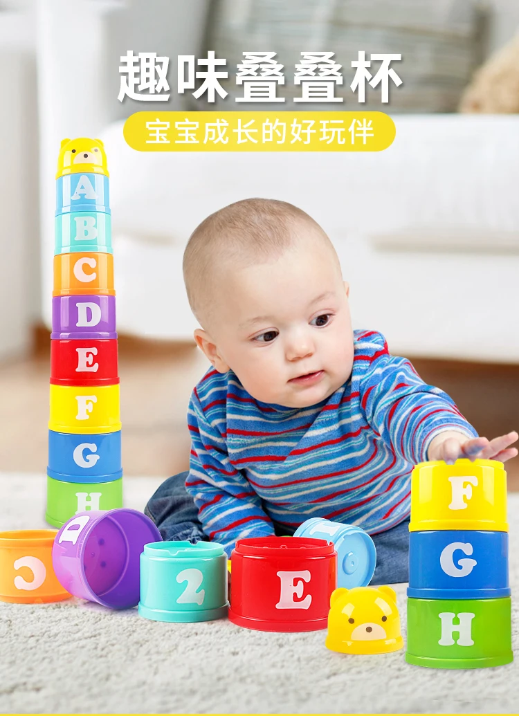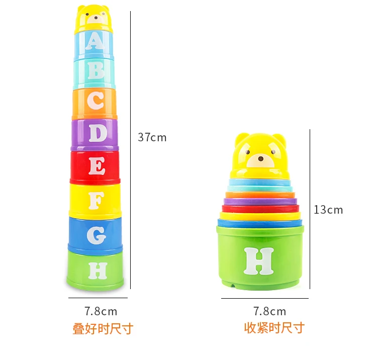 8PCS Educational Baby Toys 6Month+ Figures Letters Foldind Stack Cup Tower Children Early Intelligence