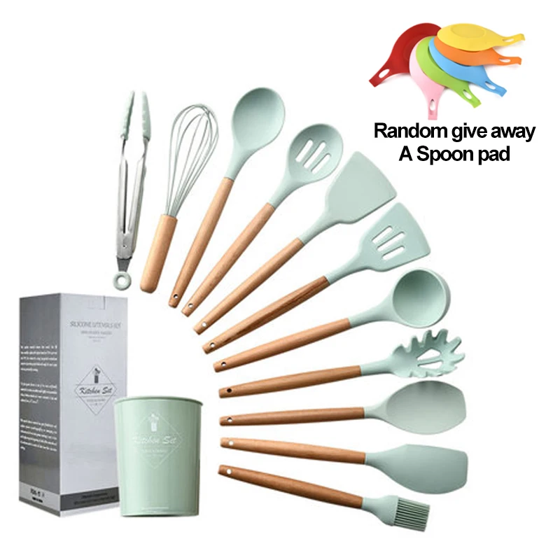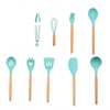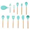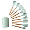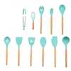 9/10/12PCS Silicone Cooking Utensils Set Non-stick Spatula Shovel Wooden Handle Cooking Tools Set With Storage Box Kitchen Tools