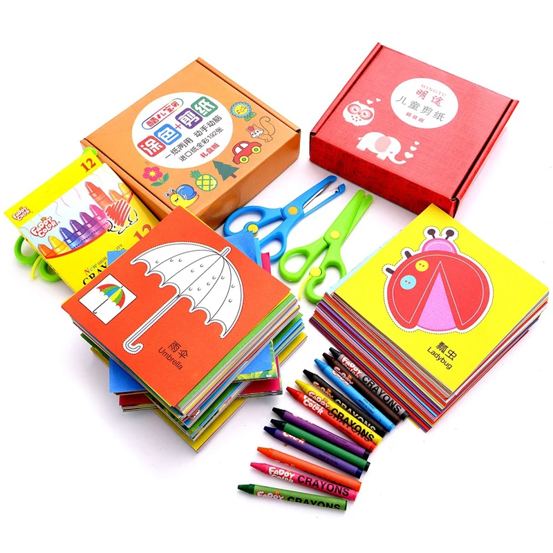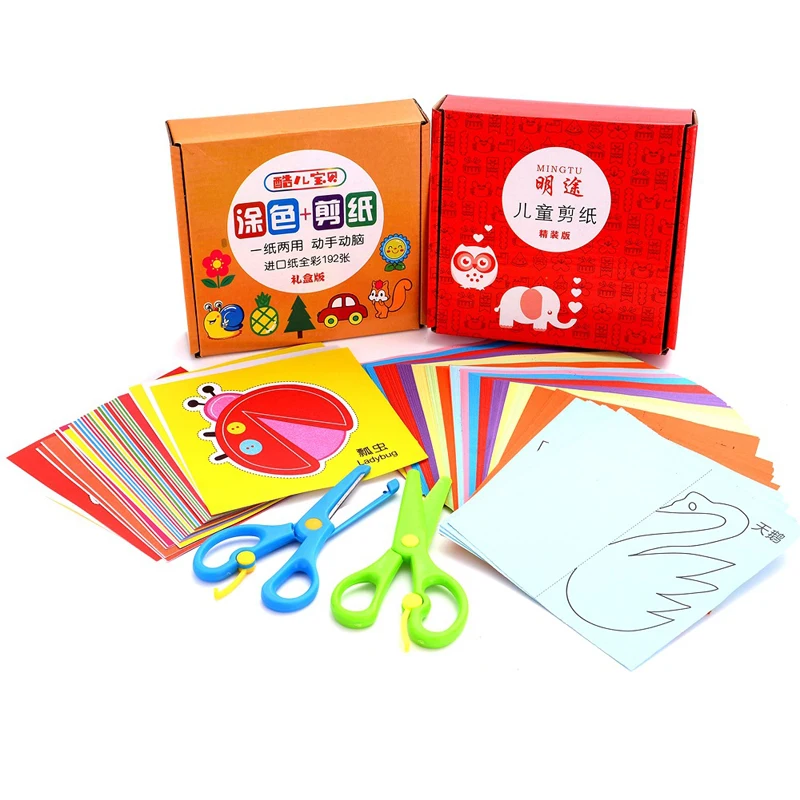 96/192 Pcs Craft Paper Kids Toys DIY Cut Book With Scissors Children Scrapbooking Drawing Toys for Baby Educational Toy Gifts