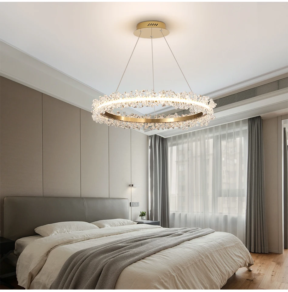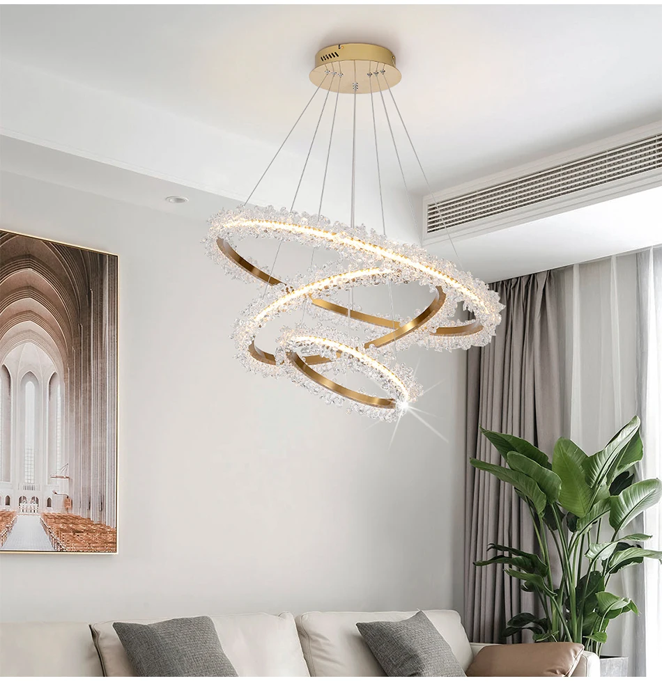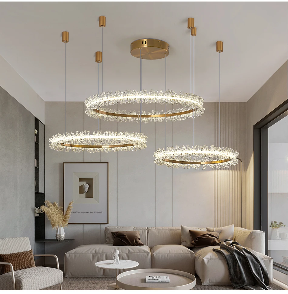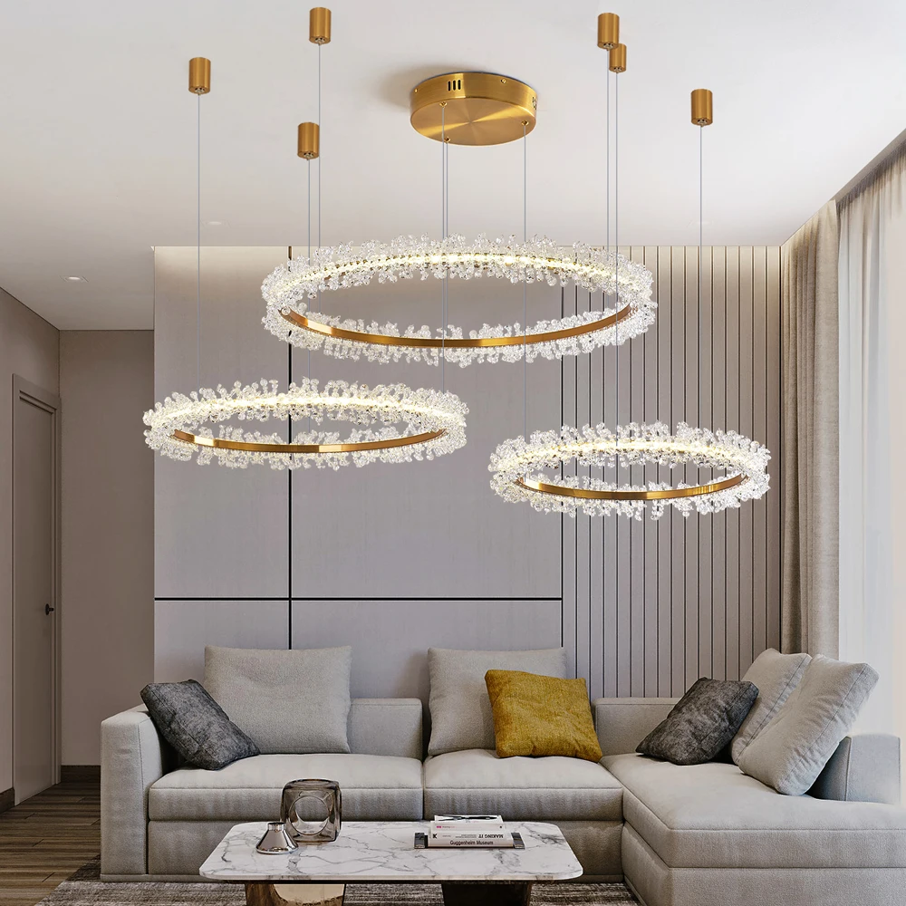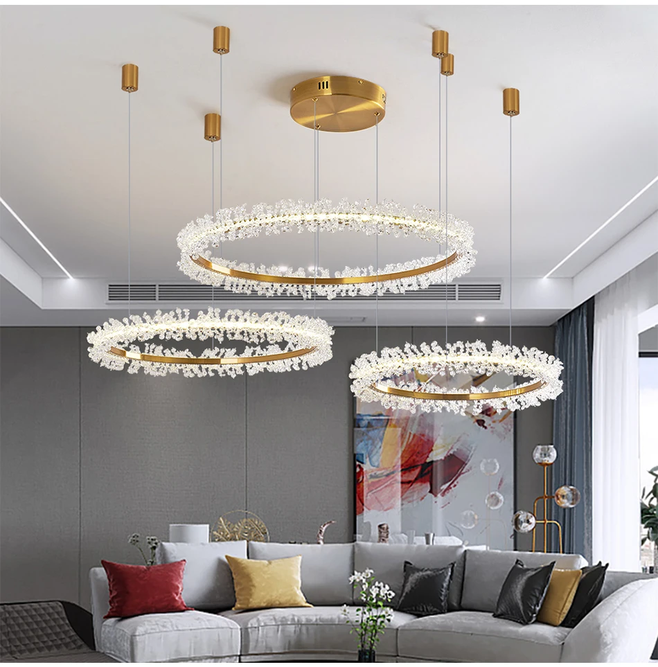 Modern led chandelier for living room gold ring combination chandeliers lighting home decoration lustre cristal lamps