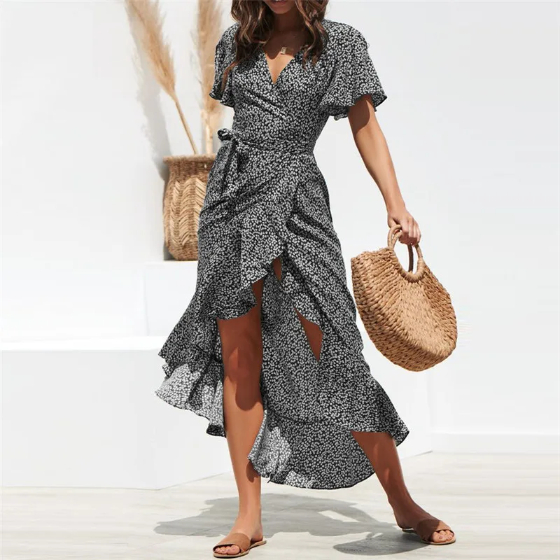 Long Wrap Dress 2019 Summer Boho Style Floral Print Maxi Beach Dress Sexy Side Split Elegant Party Dress Sundress Vestidos