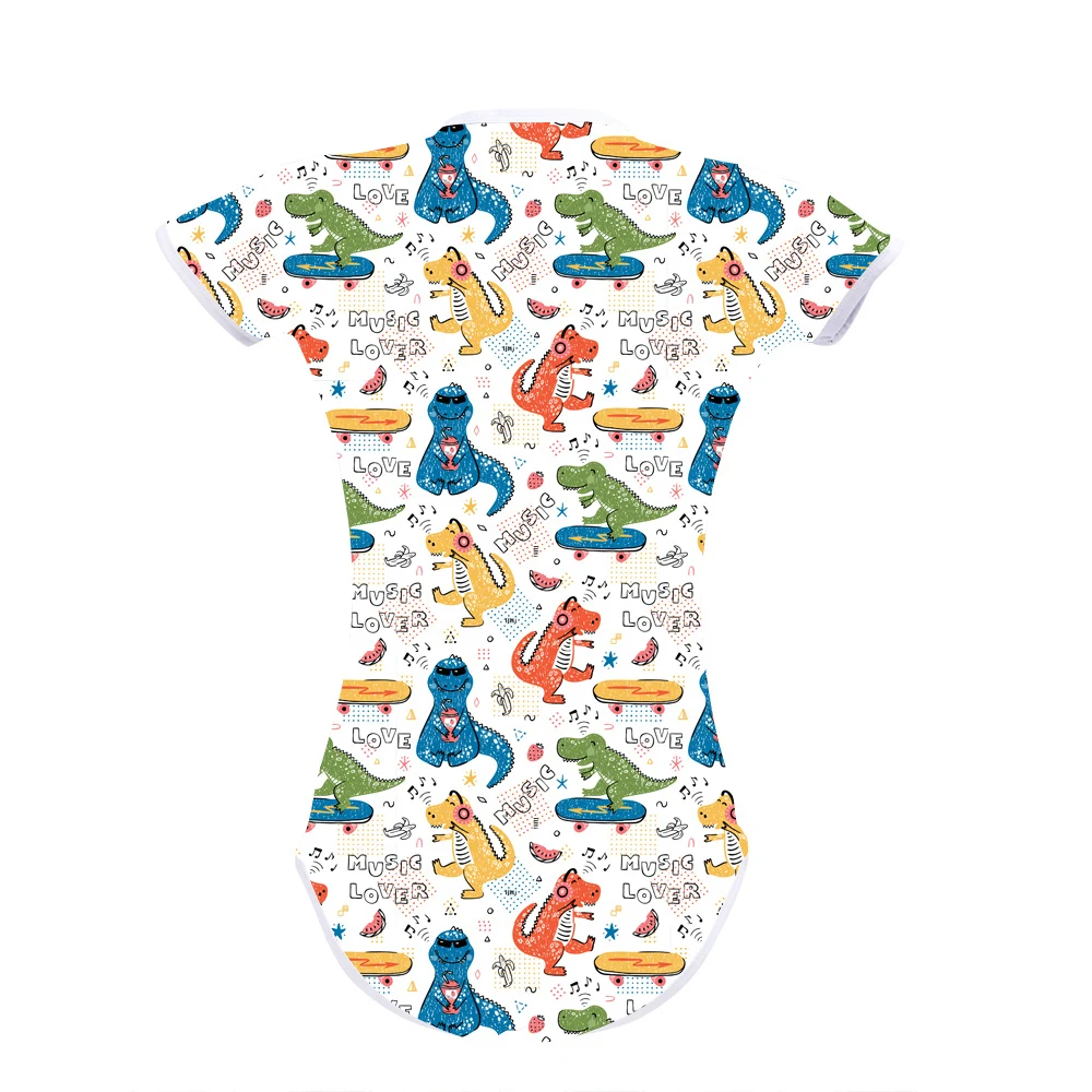 The fabric is soft on skin and good stretches There are a row of 4 crotch snaps on bottom, it is for easy dressing and a secure fit.