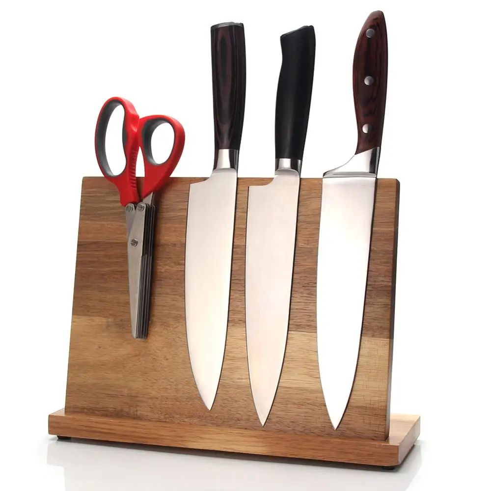 Acacia Wood Magnetic Knife Block Holder, Universal Stand Without Knives for kitchen