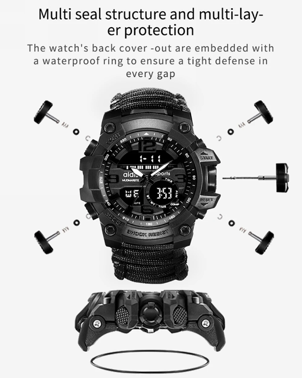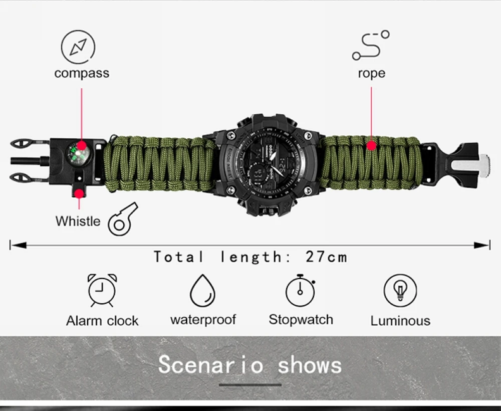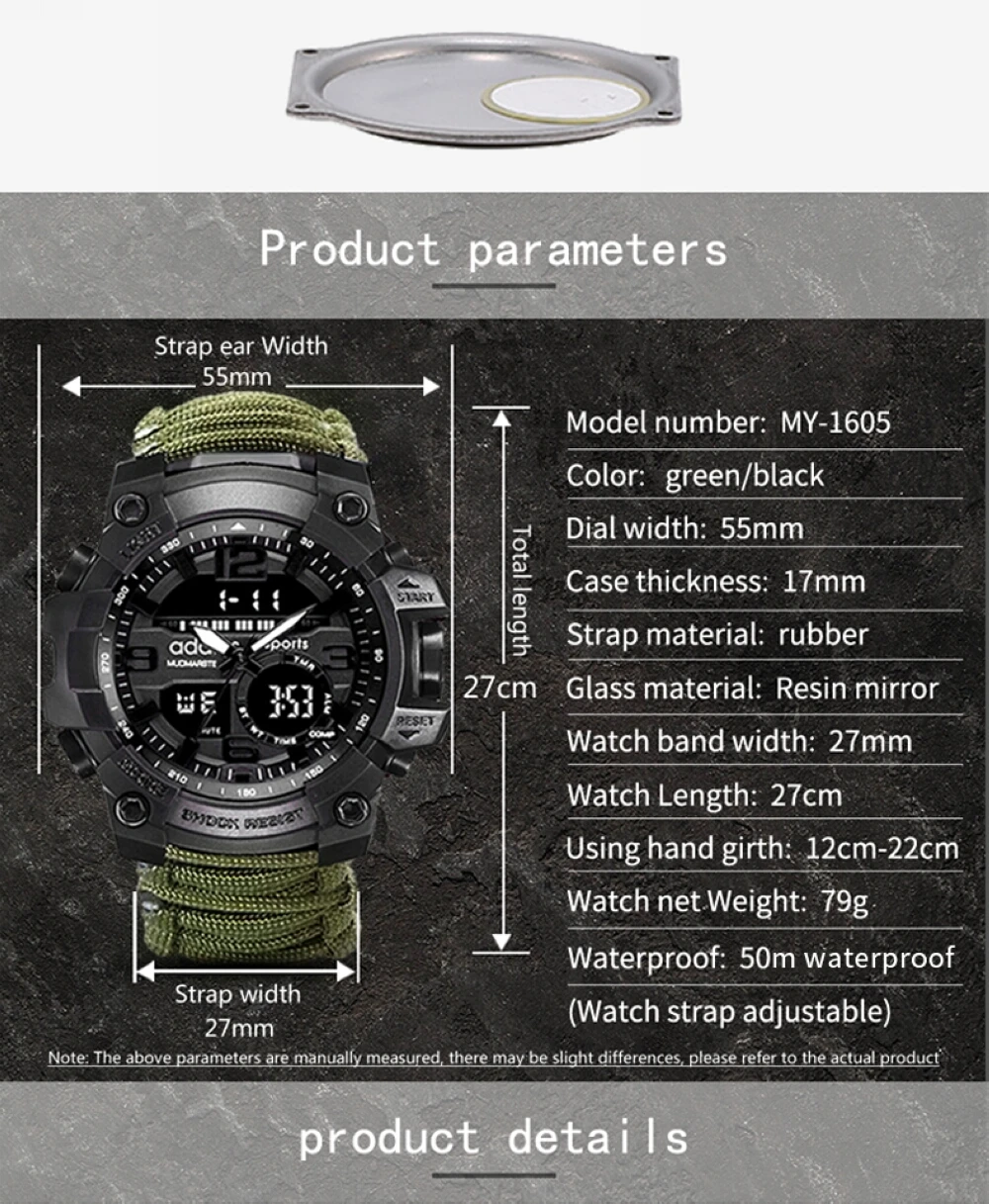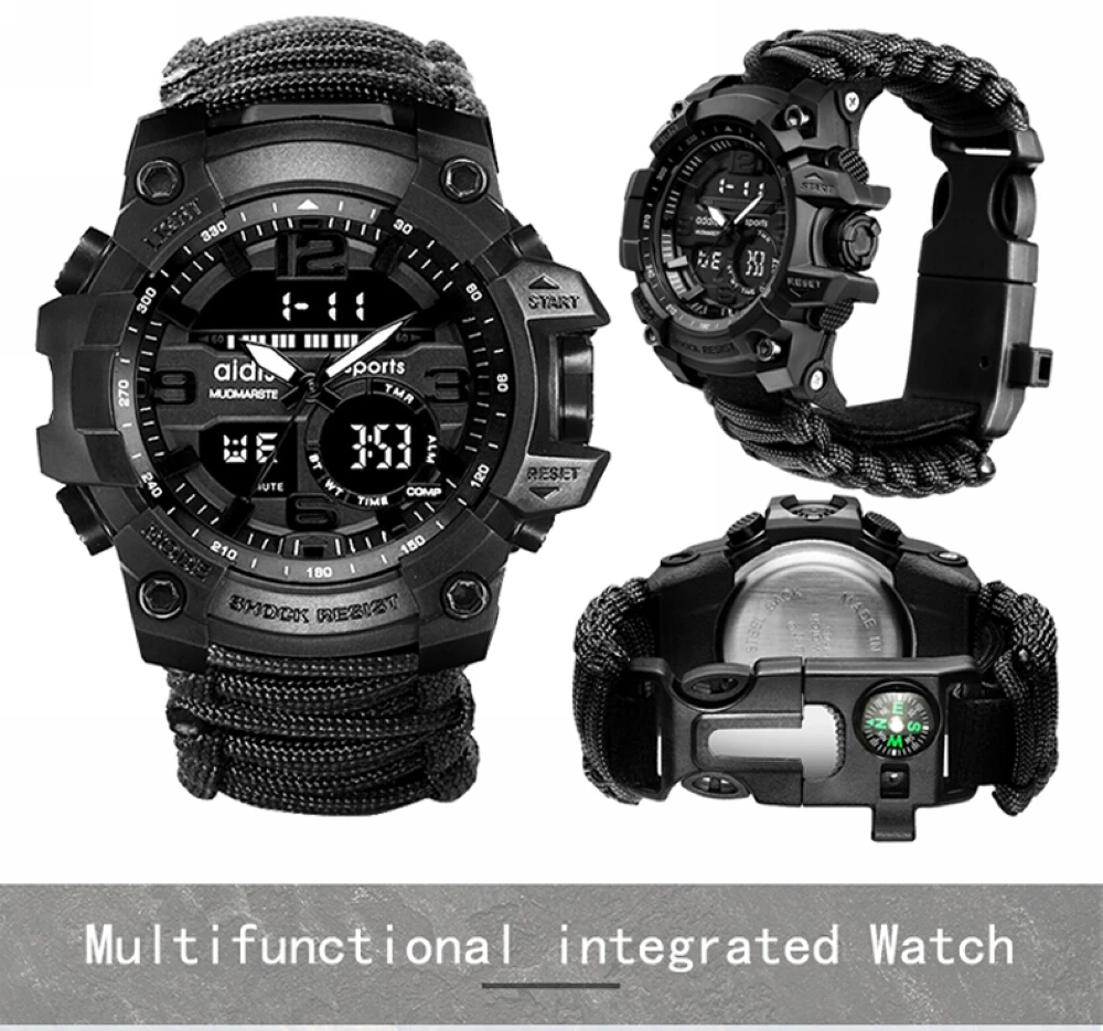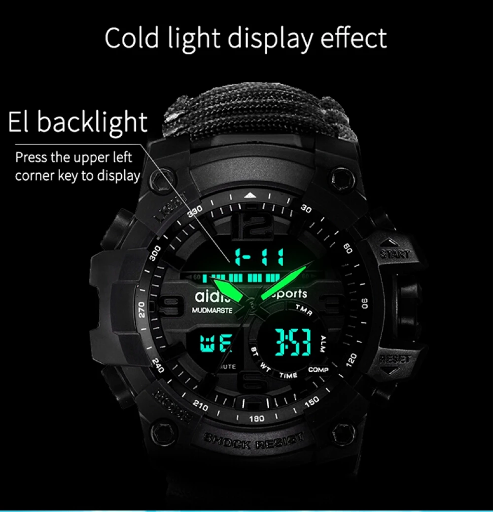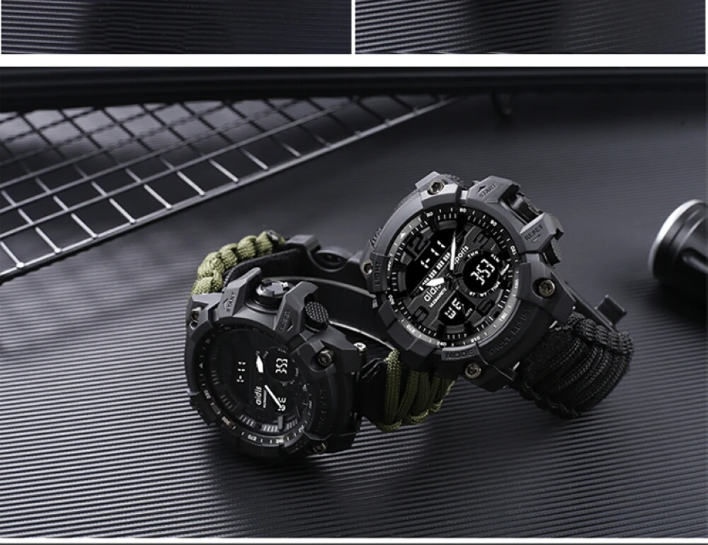 Military Watch with Compass Men Tend Waterproof Whistel Stopwatch Alarm Clock Sport Digital Wrist Watch montre homme