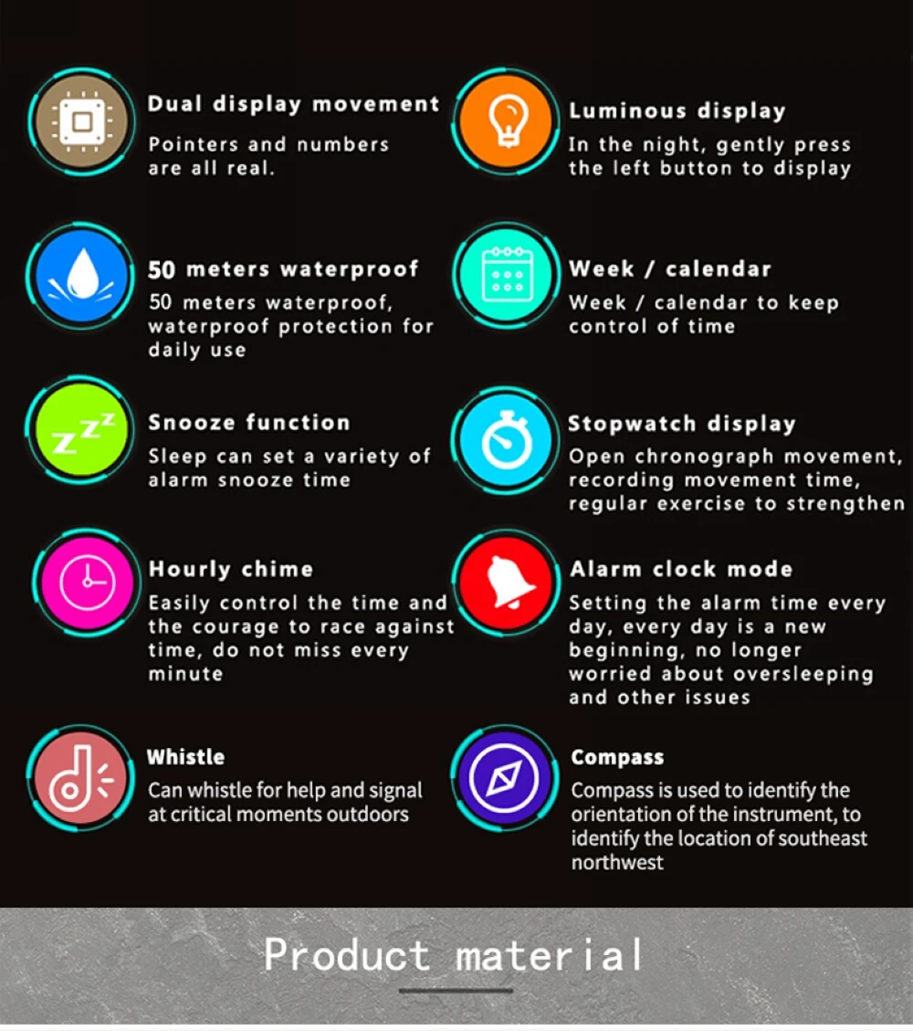 Features: Auto Date, Repeater, Perpetual Calendar, Alarm, Water Resistant, LED display, Shock Resistant, Back Light,compass