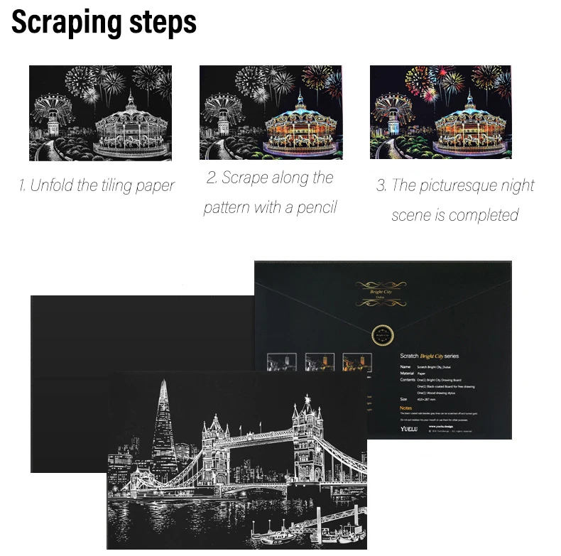 Package Content: 1 X Magic Scratch Art Painting Paper 41x28cm / 16.1×11.3in