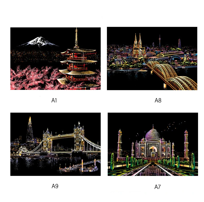Adult Decompression Scratch Painting Toys Magic Scratch Art Painting Paper Night Scene Diy Manual Scratch Painting Children Toys
