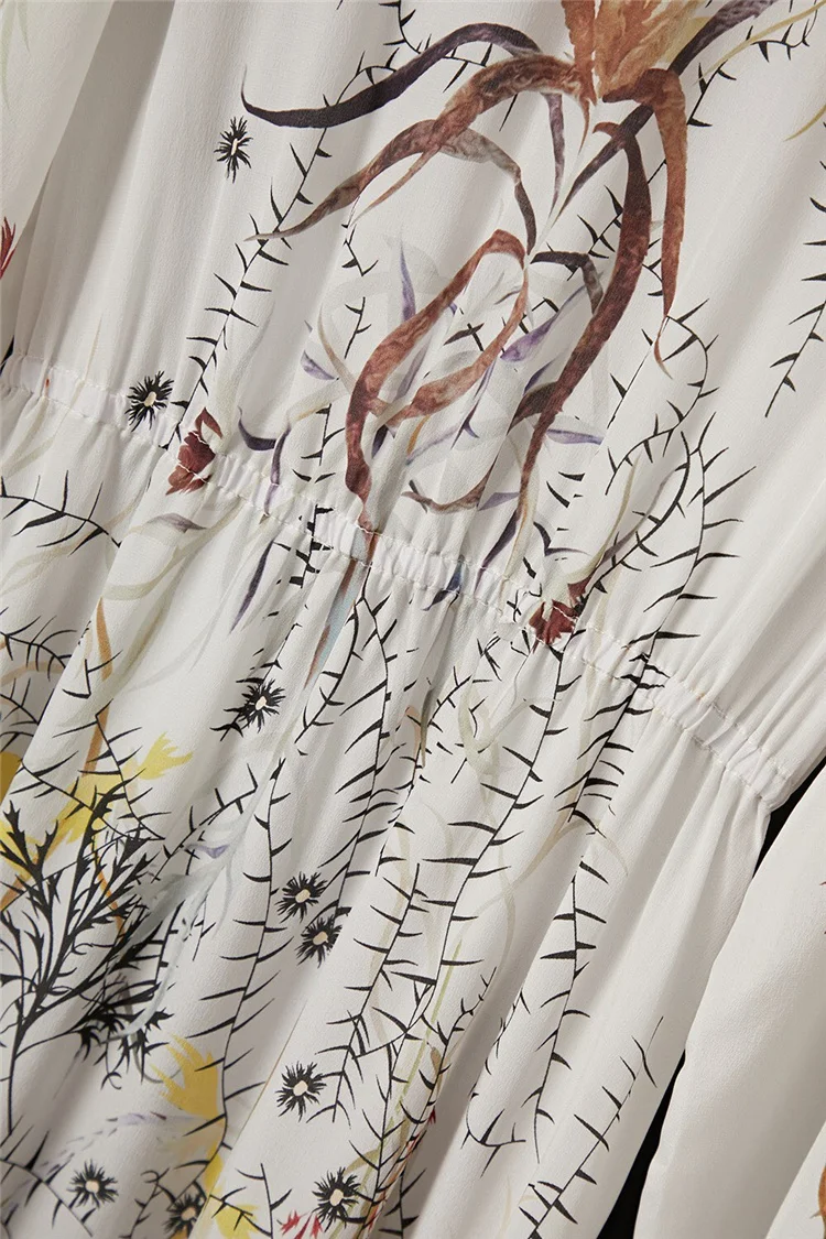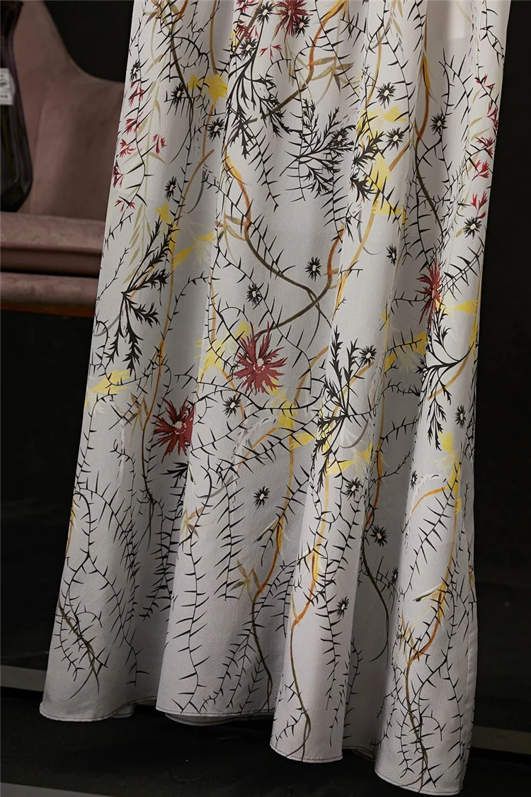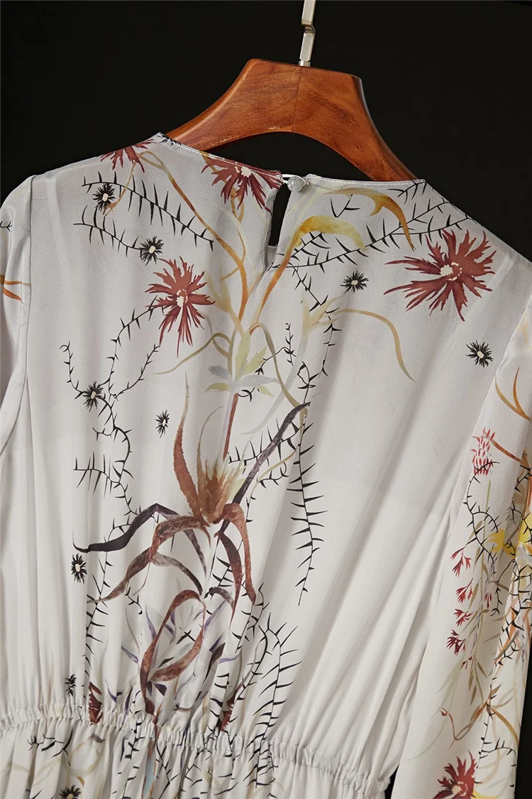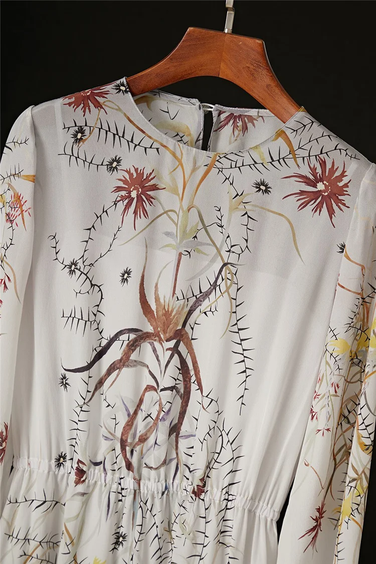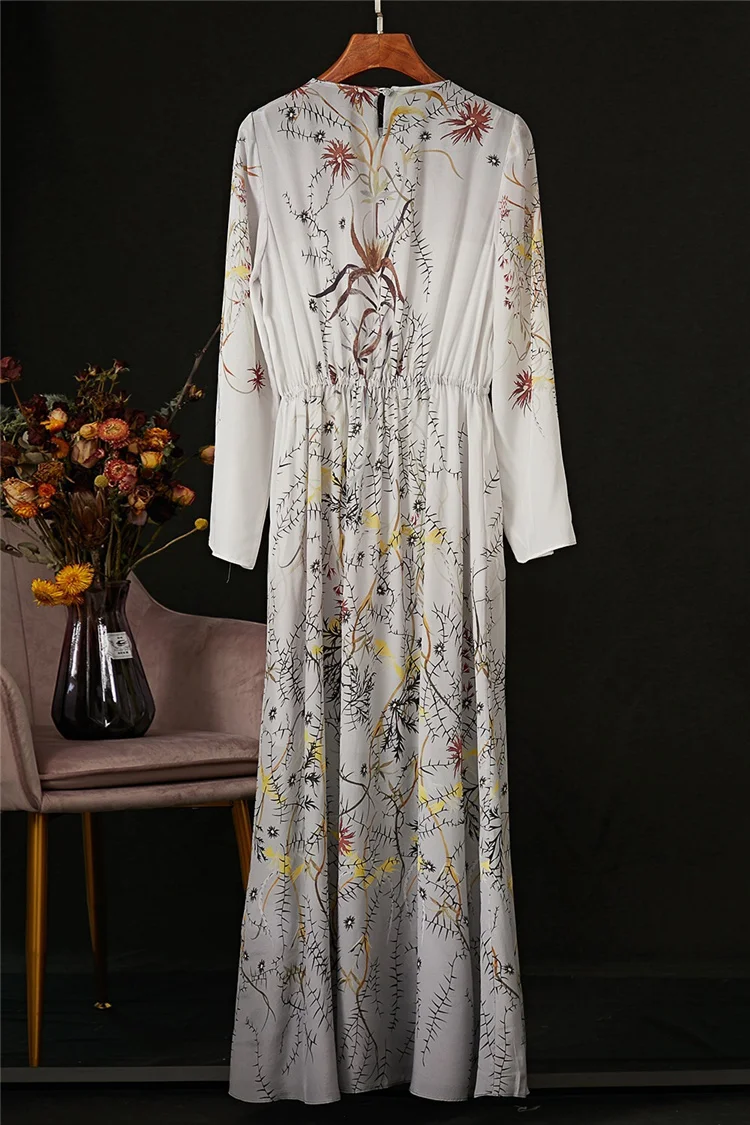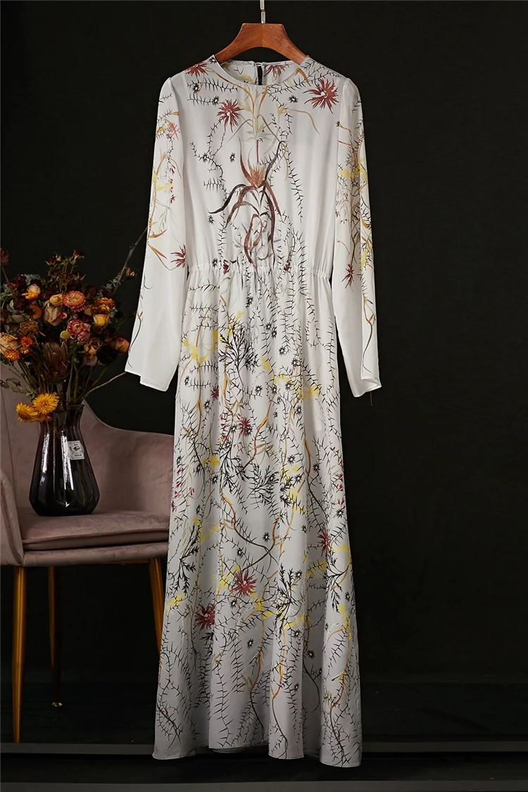 AELESEEN Designer Women Spring Summer Dress 2020 Floral Print Long Sleeve High Quality Maxi Dress Luxury Party Silk Dress