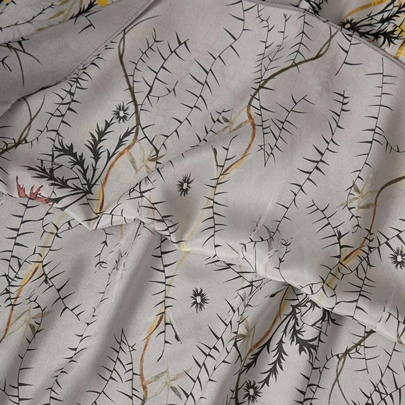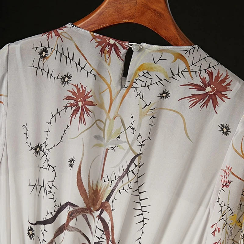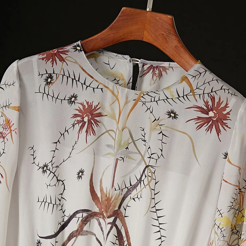 AELESEEN Designer Women Spring Summer Dress 2020 Floral Print Long Sleeve High Quality Maxi Dress Luxury Party Silk Dress