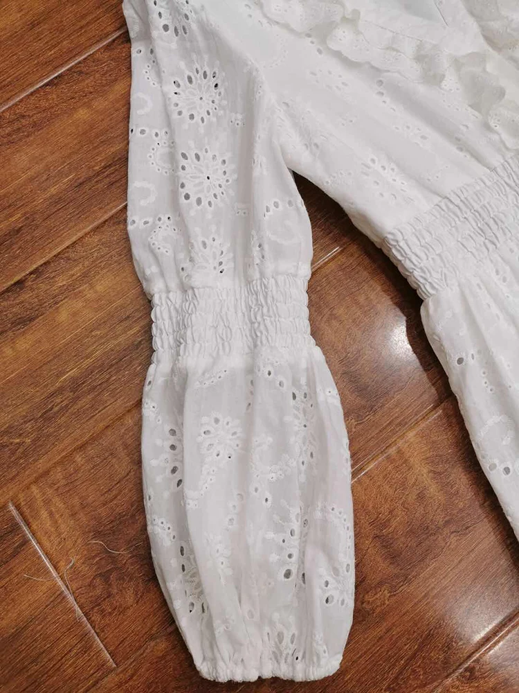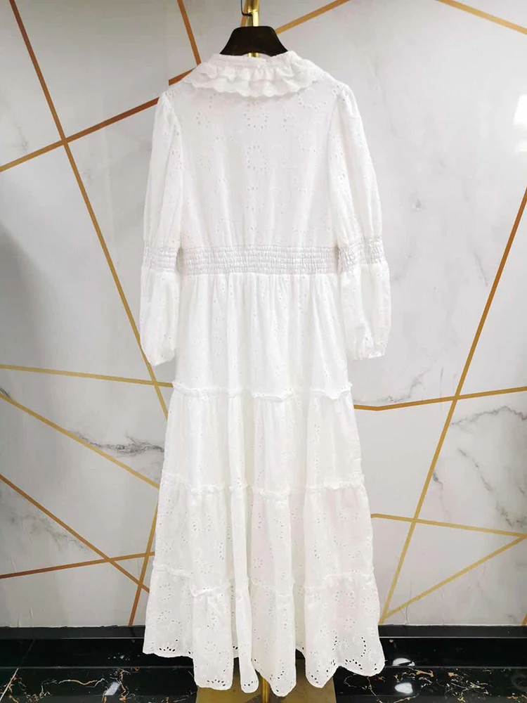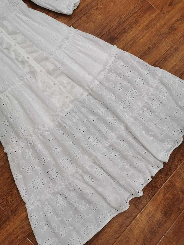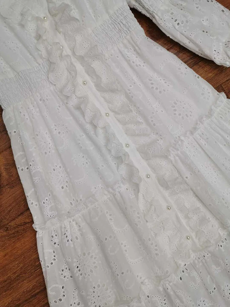 AELESEEN Maxi White Dress Women 2020 Spring Summer 3/4 Sleeve Ruffles Flower Embroidery V-Neck Party Holiday Dress Vestidos