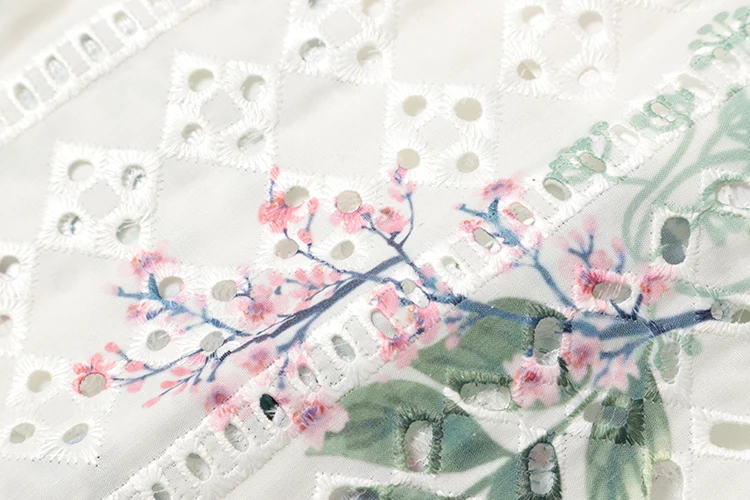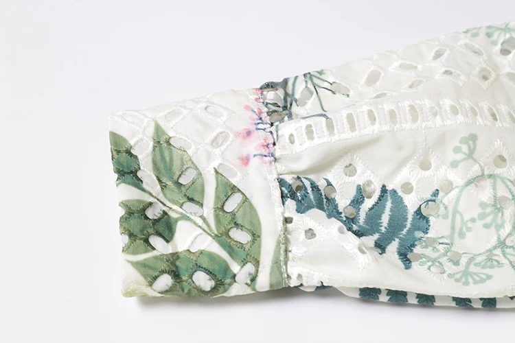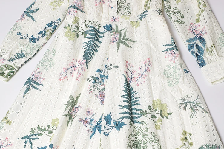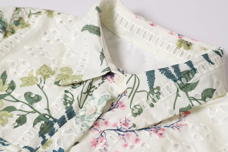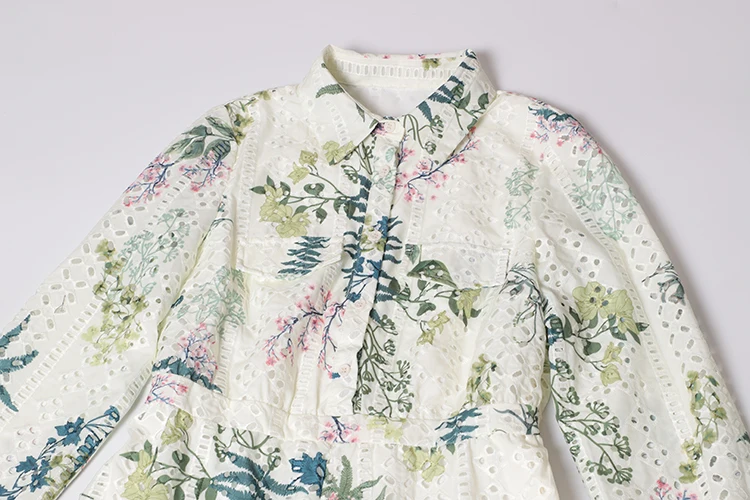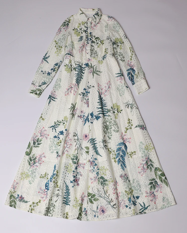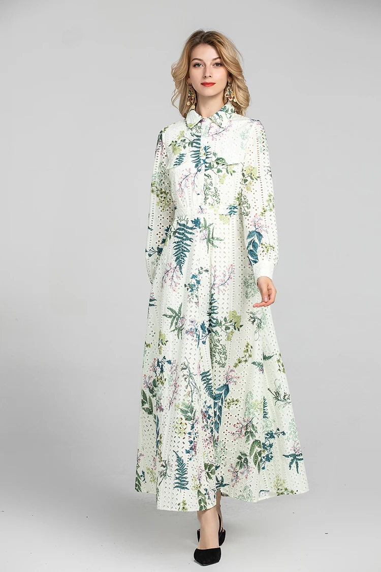 AELESEEN Runway Fashion Shirt Dress 2020 Spring Summer Designer Floral Print Hollow Out Elegant Holiday Party Maxi Dress