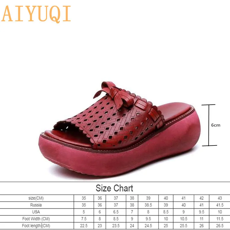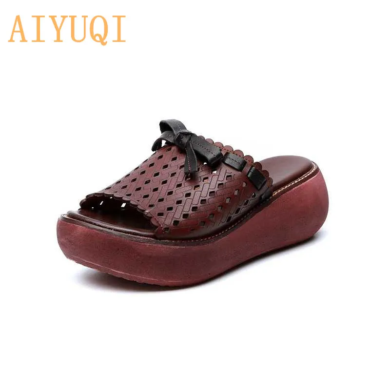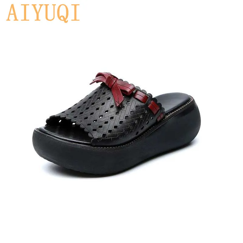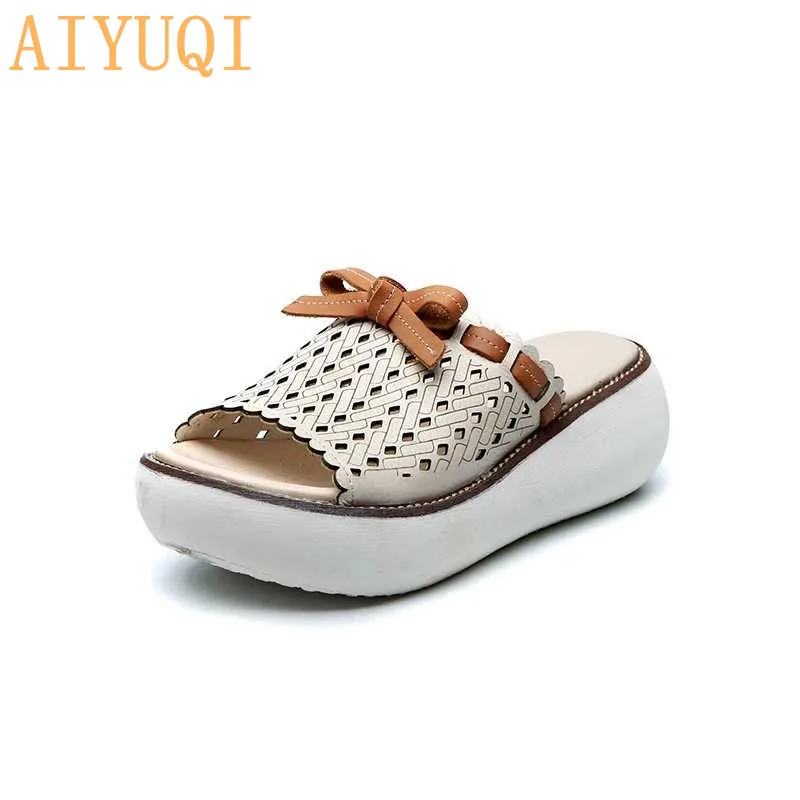 AIYUQI Slippers for women 2020 new women slippers genuine leather platform casual bow retro women slippers open toe sandals shoe