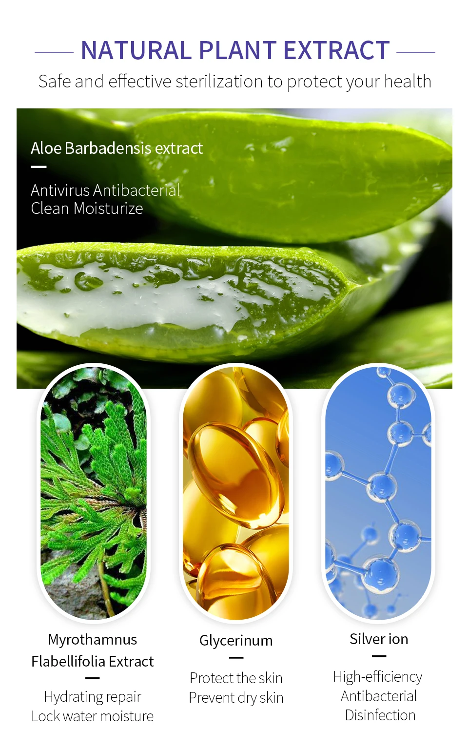 Aloe Vera Extract Hand sanitizer gel Silver ion hand soap waterless Portable Clean moisturizing 60ML
