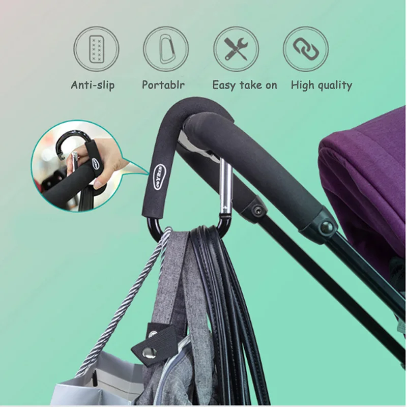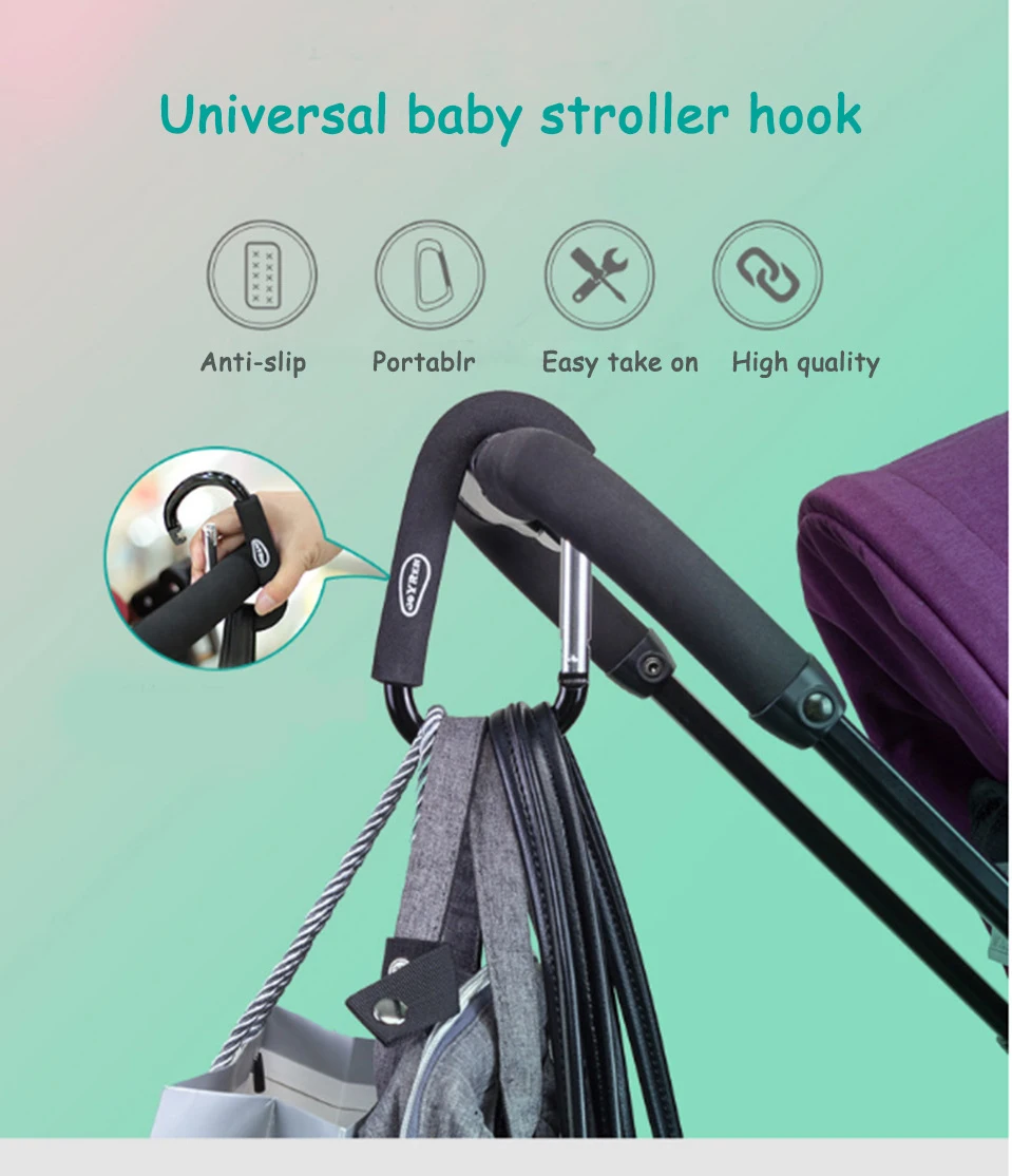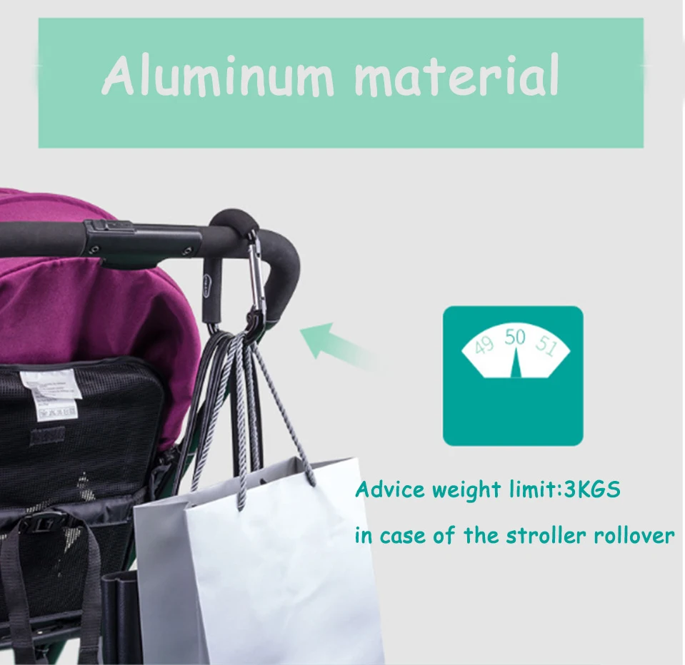 Aluminu Pram Hook baby stroller Pushchair Hanger Shopping Bag Carriage Climbing Button Carabiner Universal stroller accessories