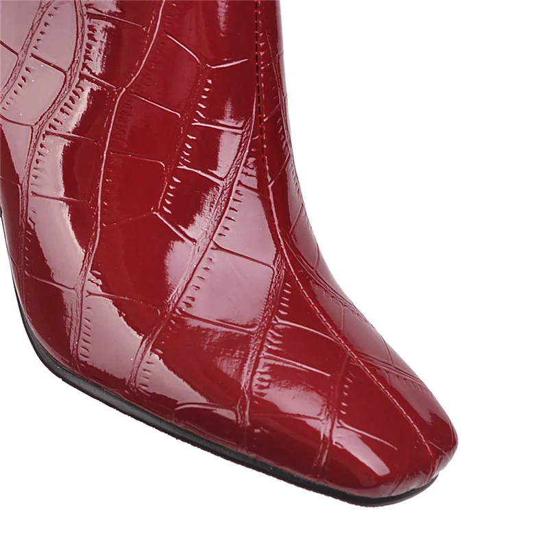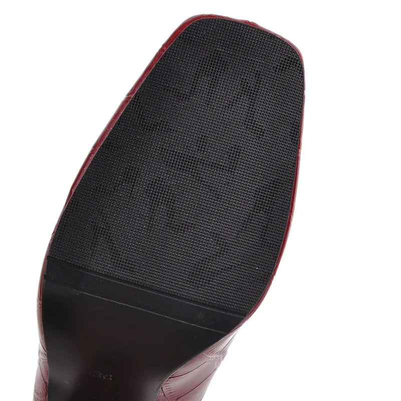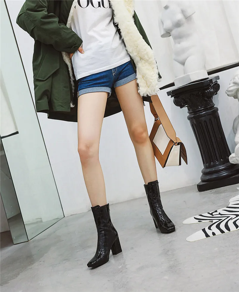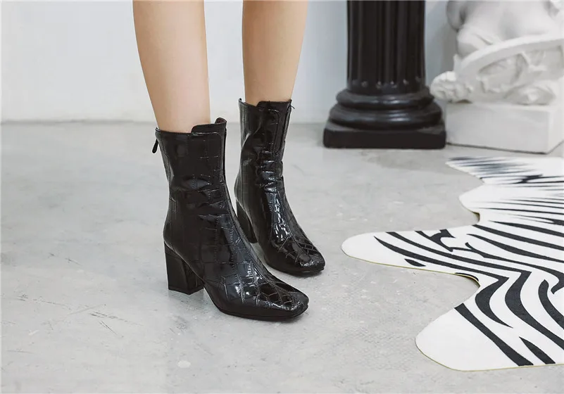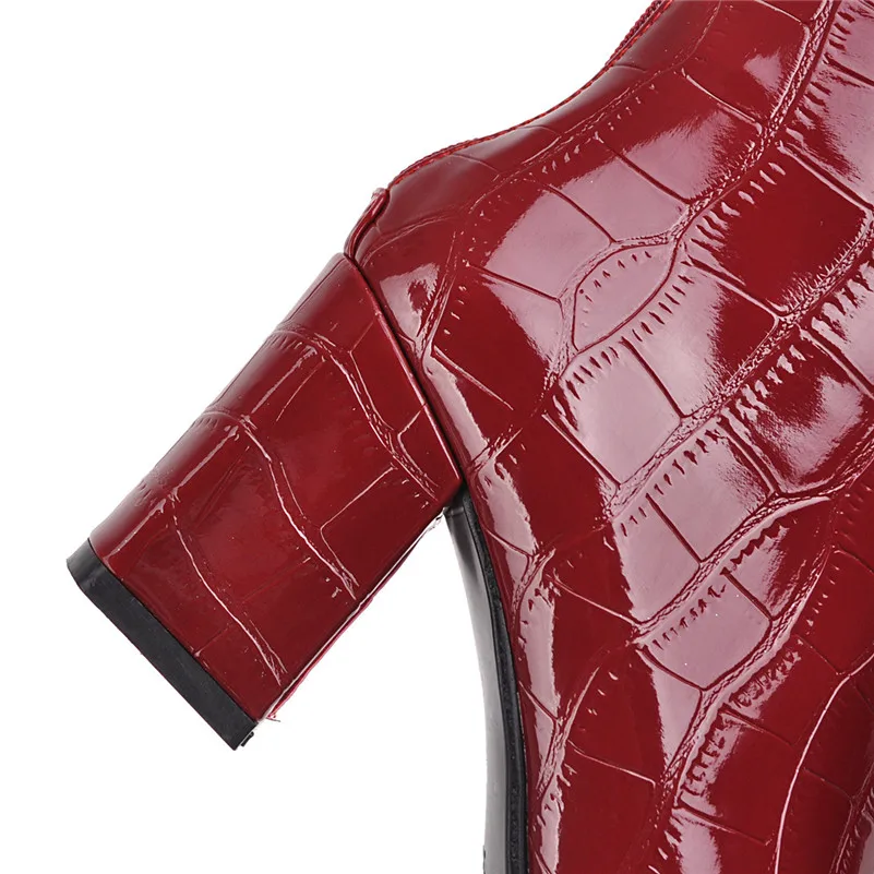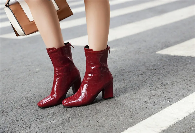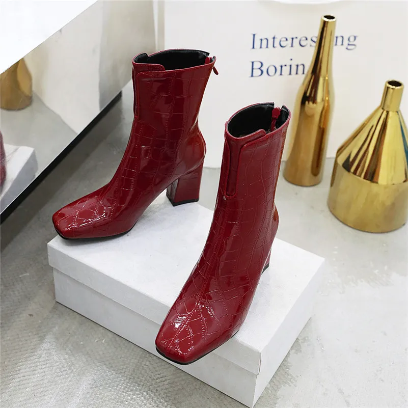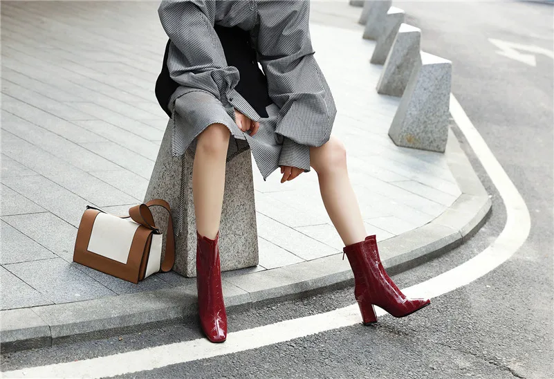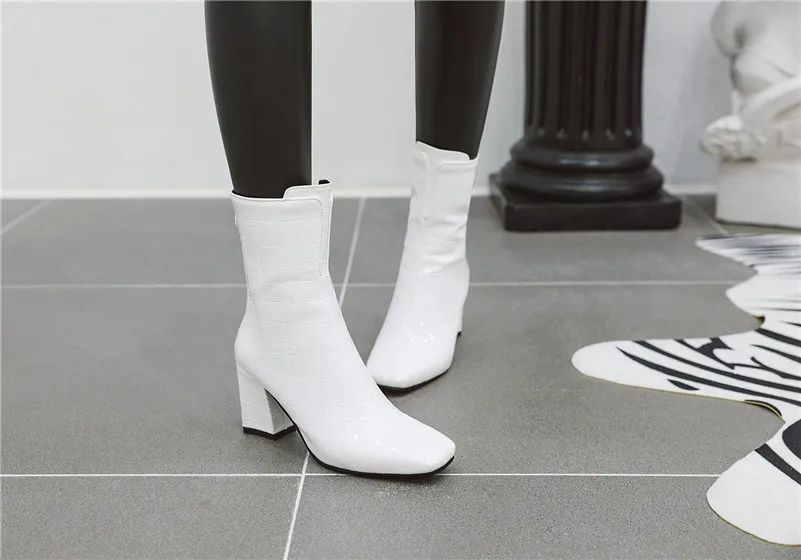 ANNYMOLI Zip Mid Calf Boots High Heel Woman Boots Square Toe Short Boots Block Heel Female Shoes Autumn Winter White Red Size 46