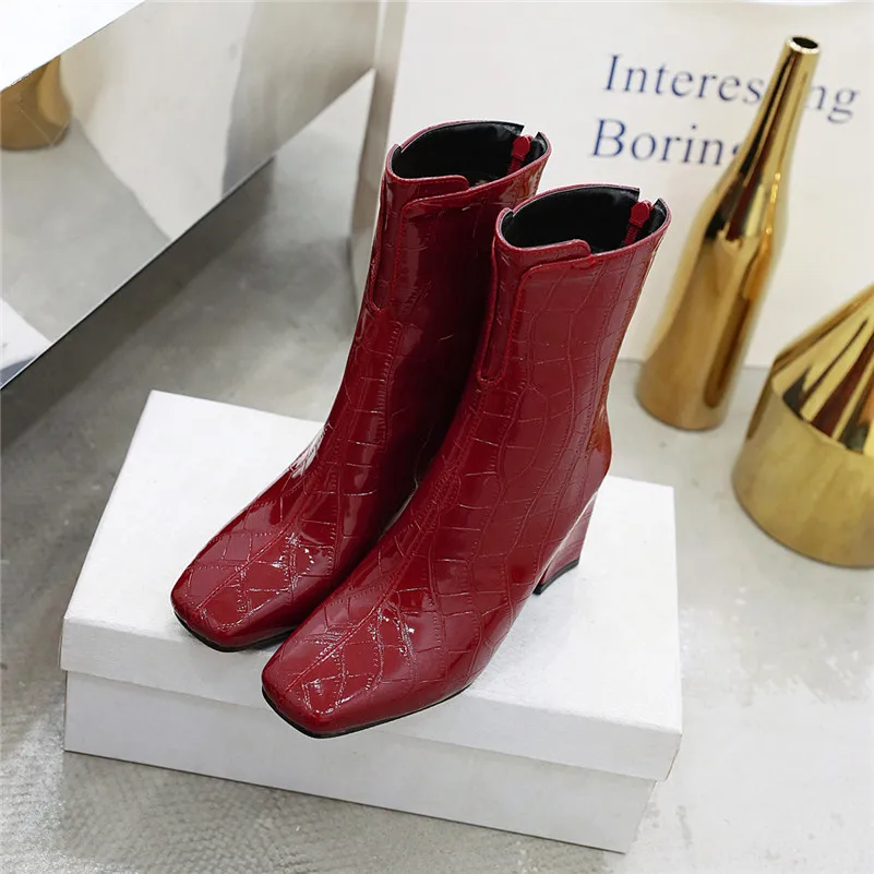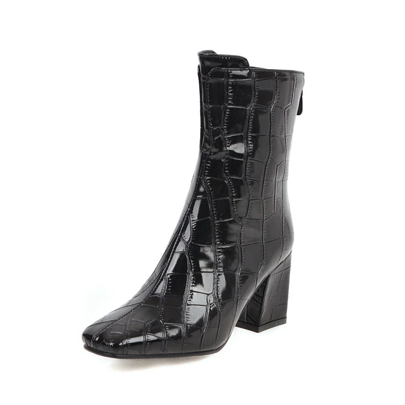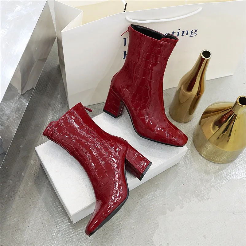 ANNYMOLI Zip Mid Calf Boots High Heel Woman Boots Square Toe Short Boots Block Heel Female Shoes Autumn Winter White Red Size 46