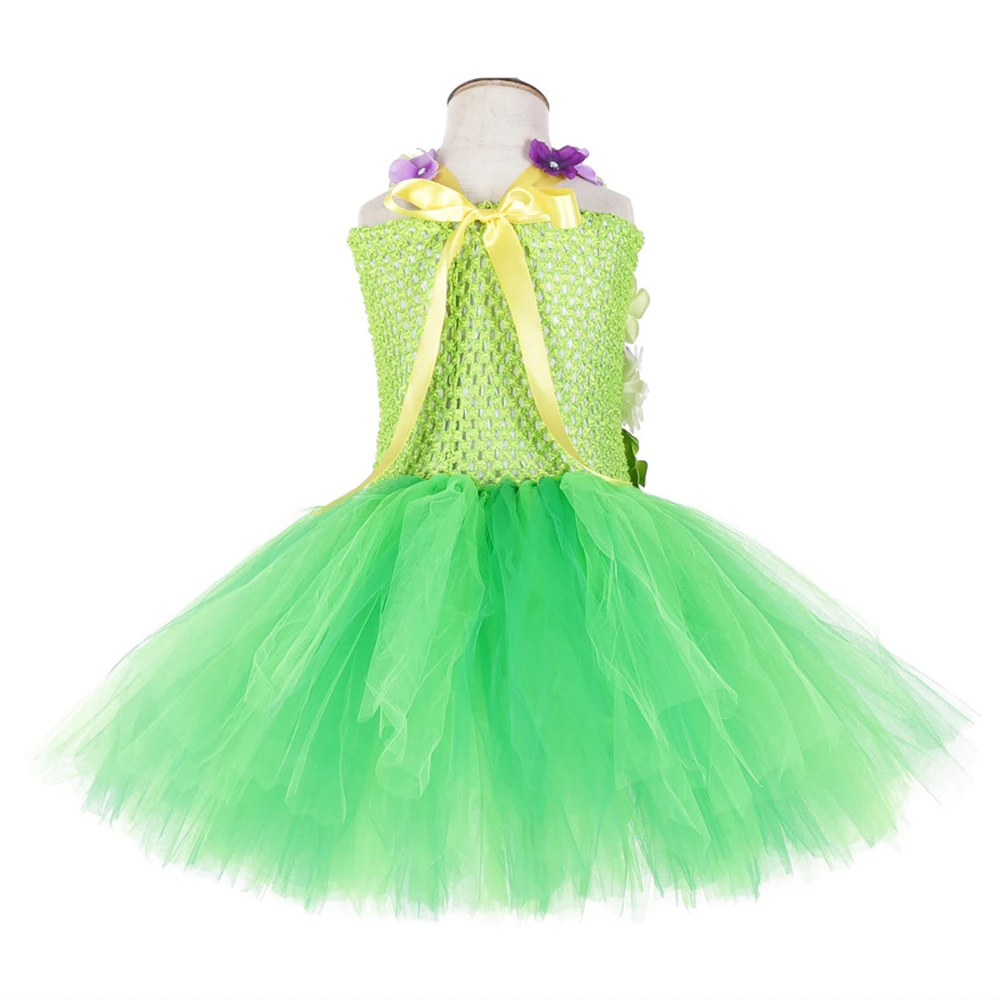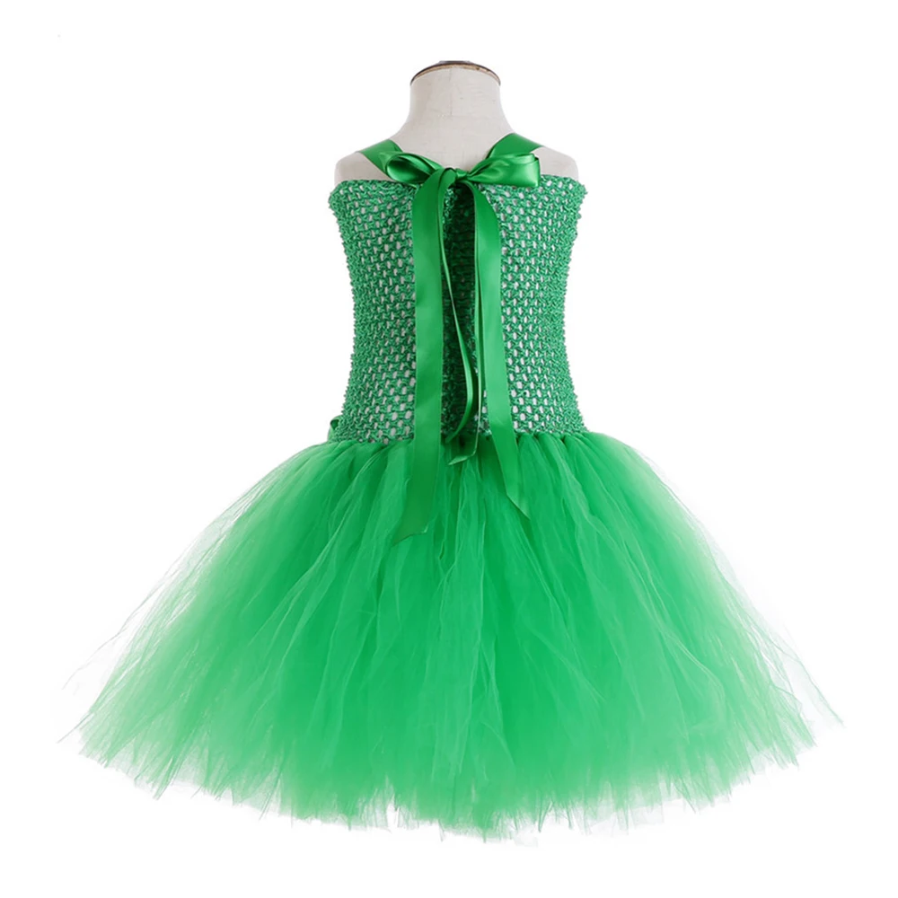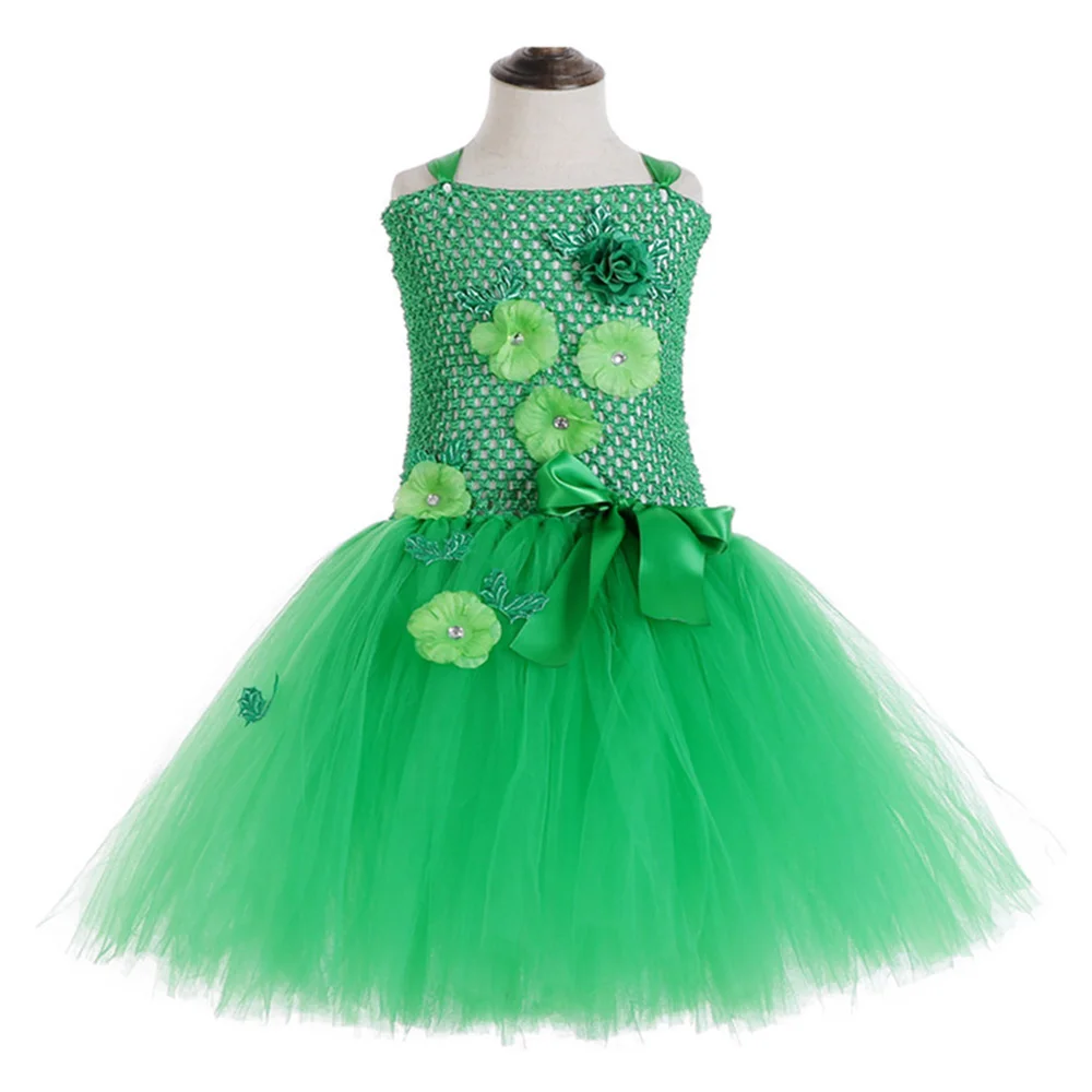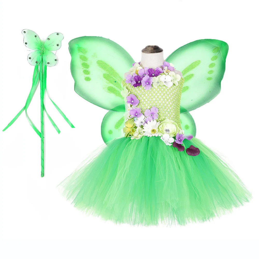 Aqua Fairy Garden Flower Girl Princess Dress Kid Baby Party Wedding Tutu Dress for Kids Halloween Tinkerbell Costume + Wings Set