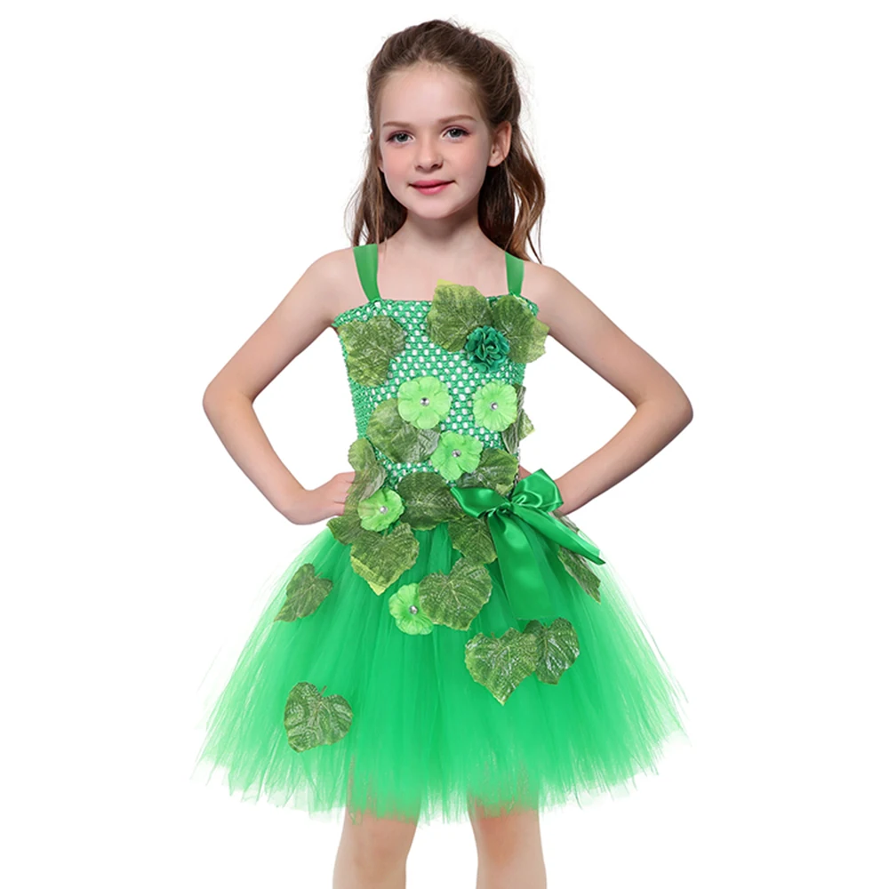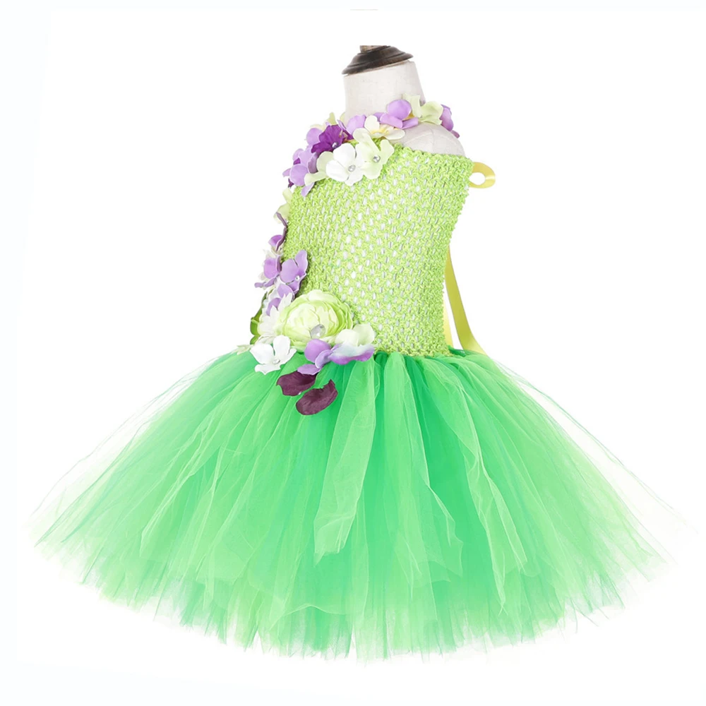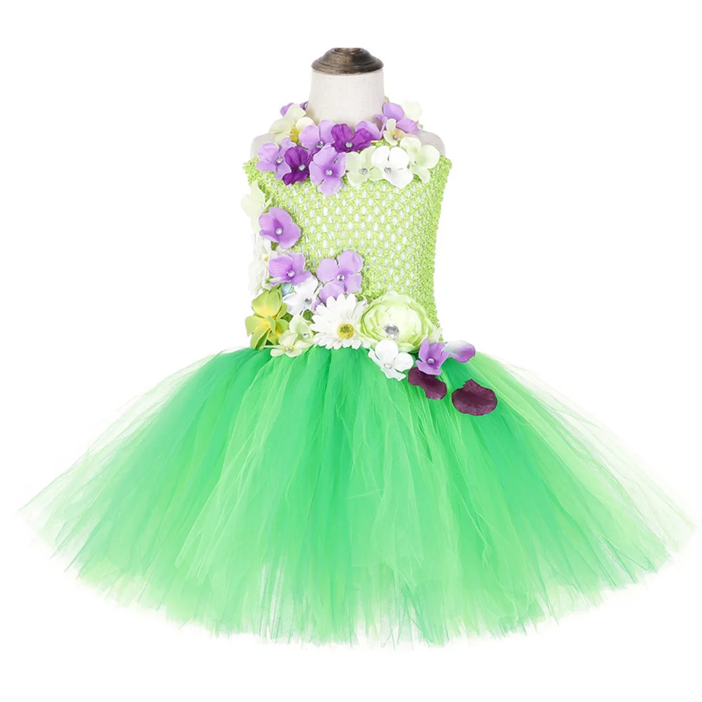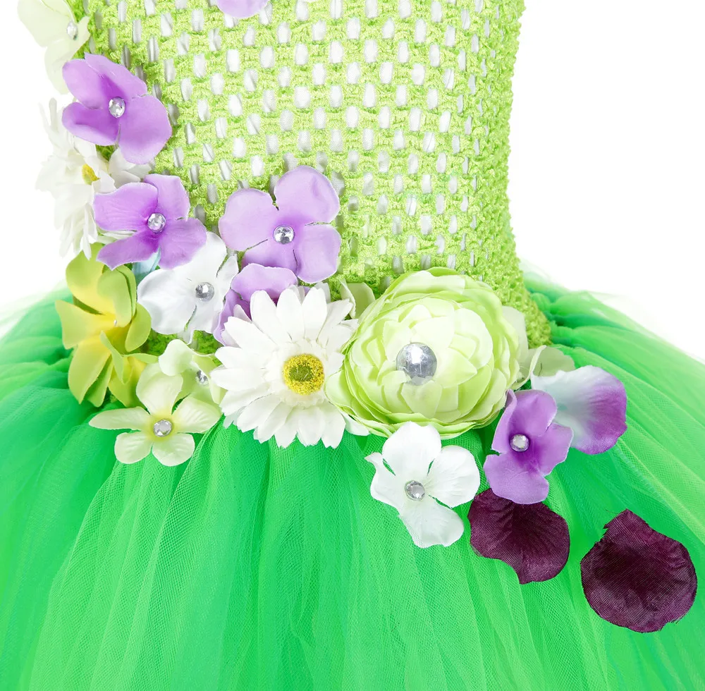 Aqua Fairy Garden Flower Girl Princess Dress Kid Baby Party Wedding Tutu Dress for Kids Halloween Tinkerbell Costume + Wings Set