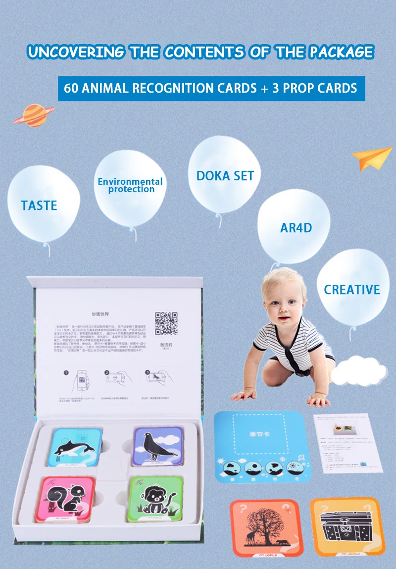 ——Ar zoo contains 60 animal CARDS + 3 function cards to meet the children’s desire for knowledge to the greatest extent;