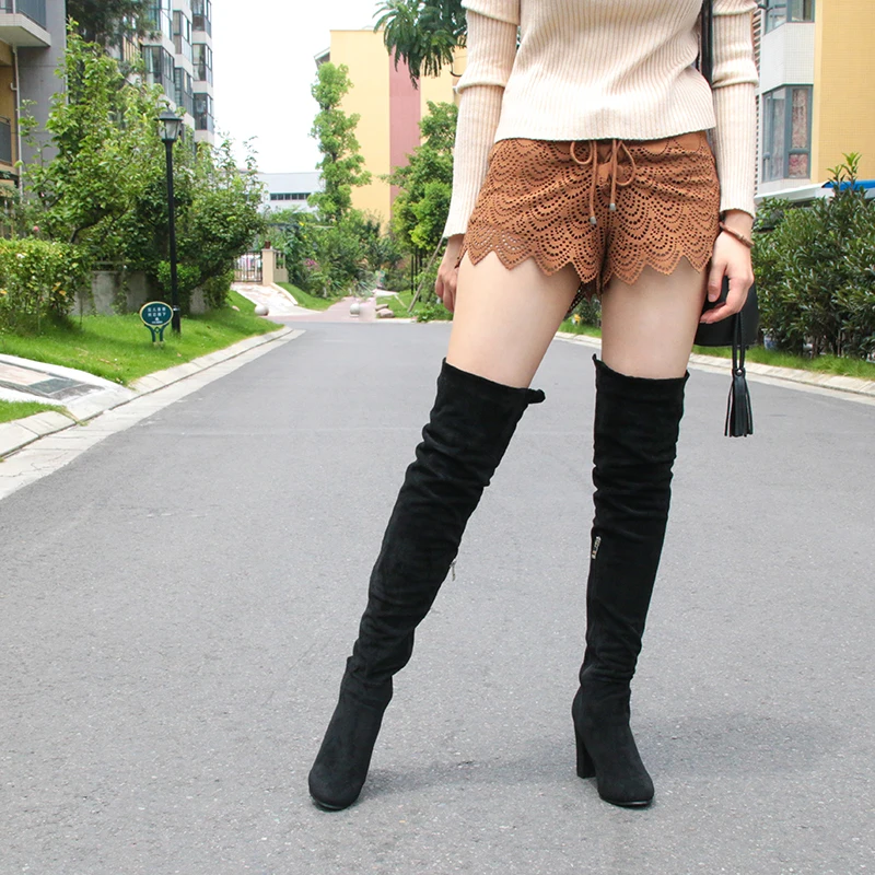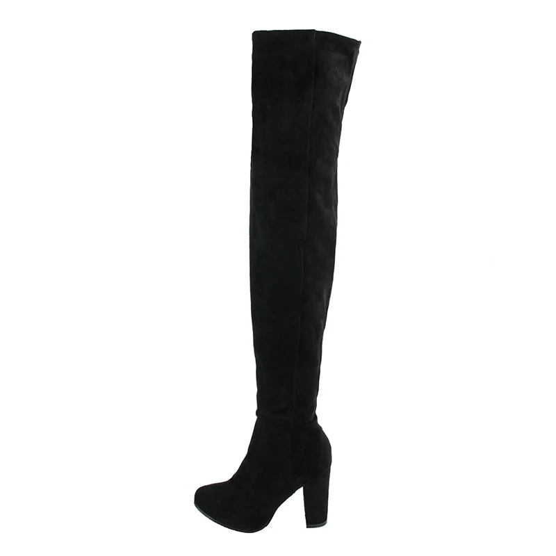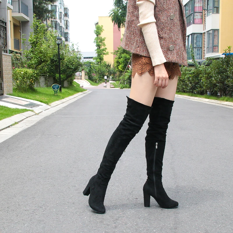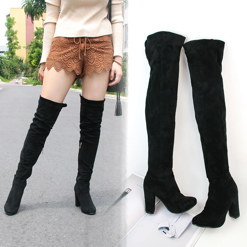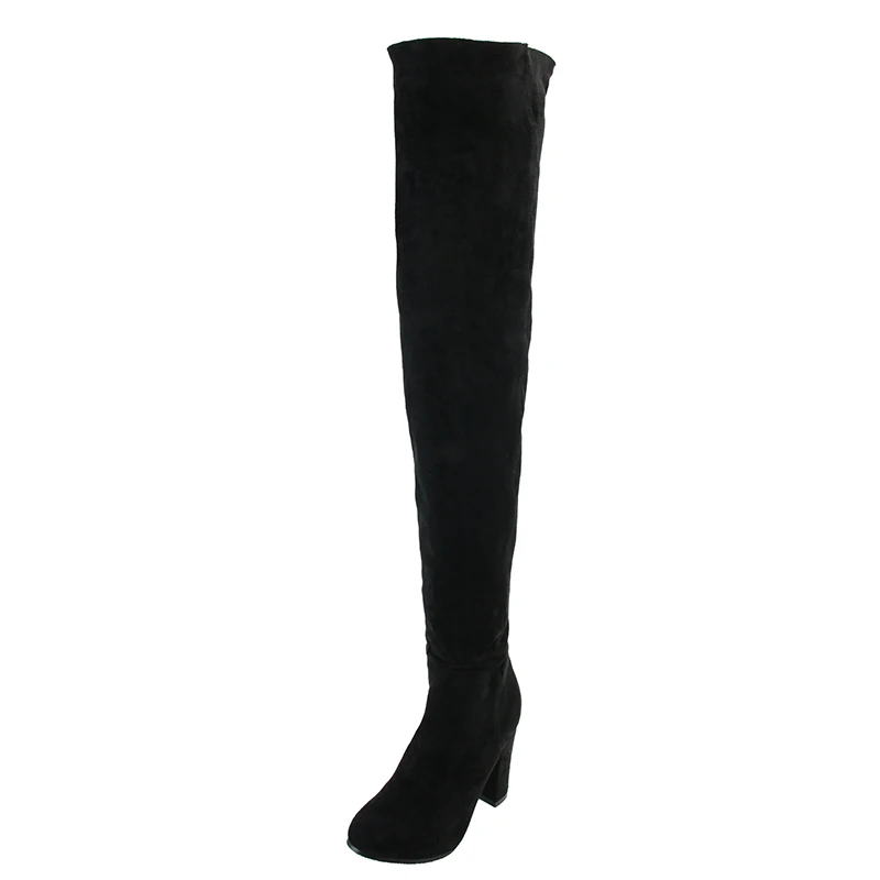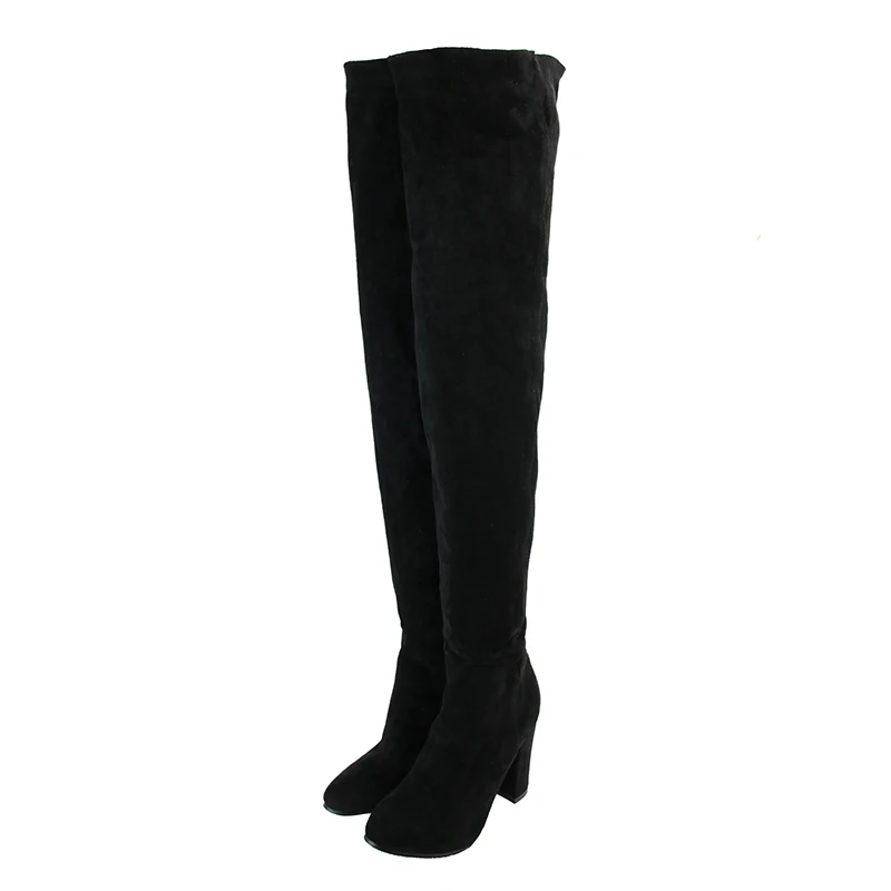 ASHIOFU Handmade Ladies Chunky Heel Thigh High Boots Party Prom Winter Over-the-knee Boots Shortplush Evening Fashion Long Boots