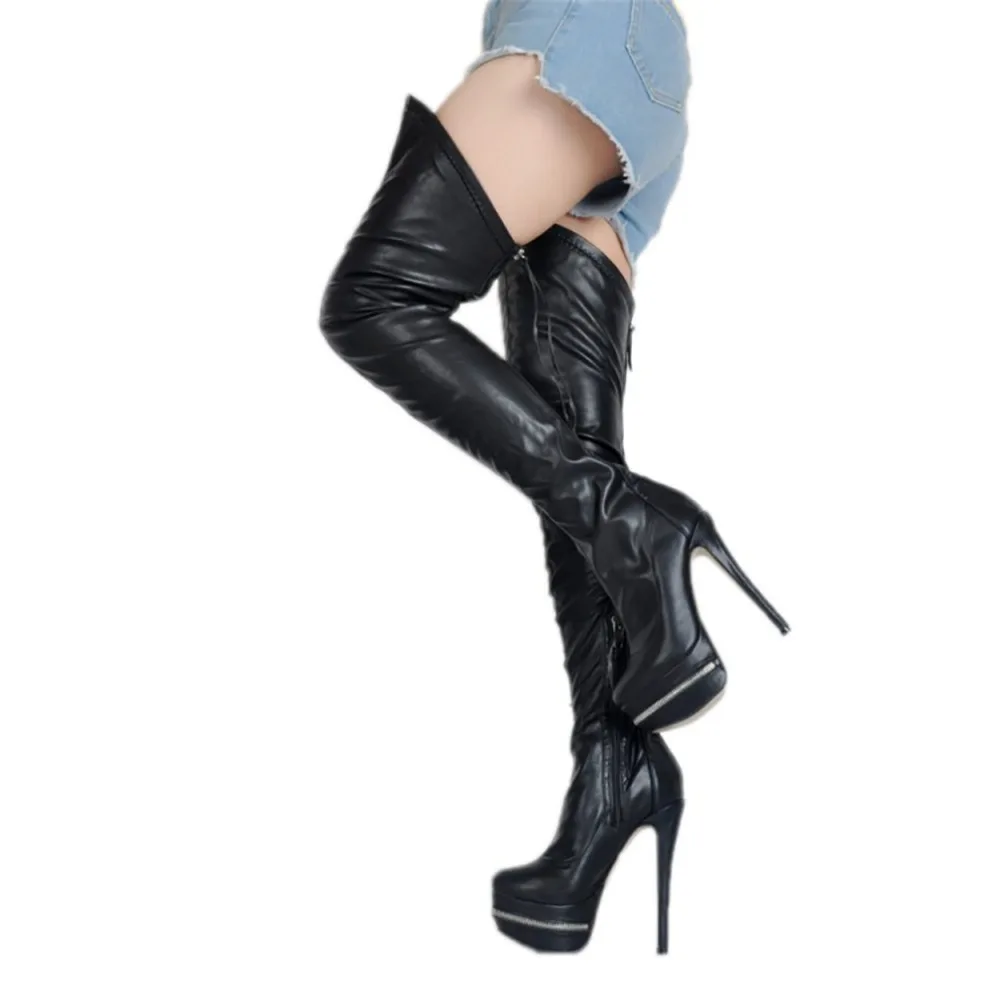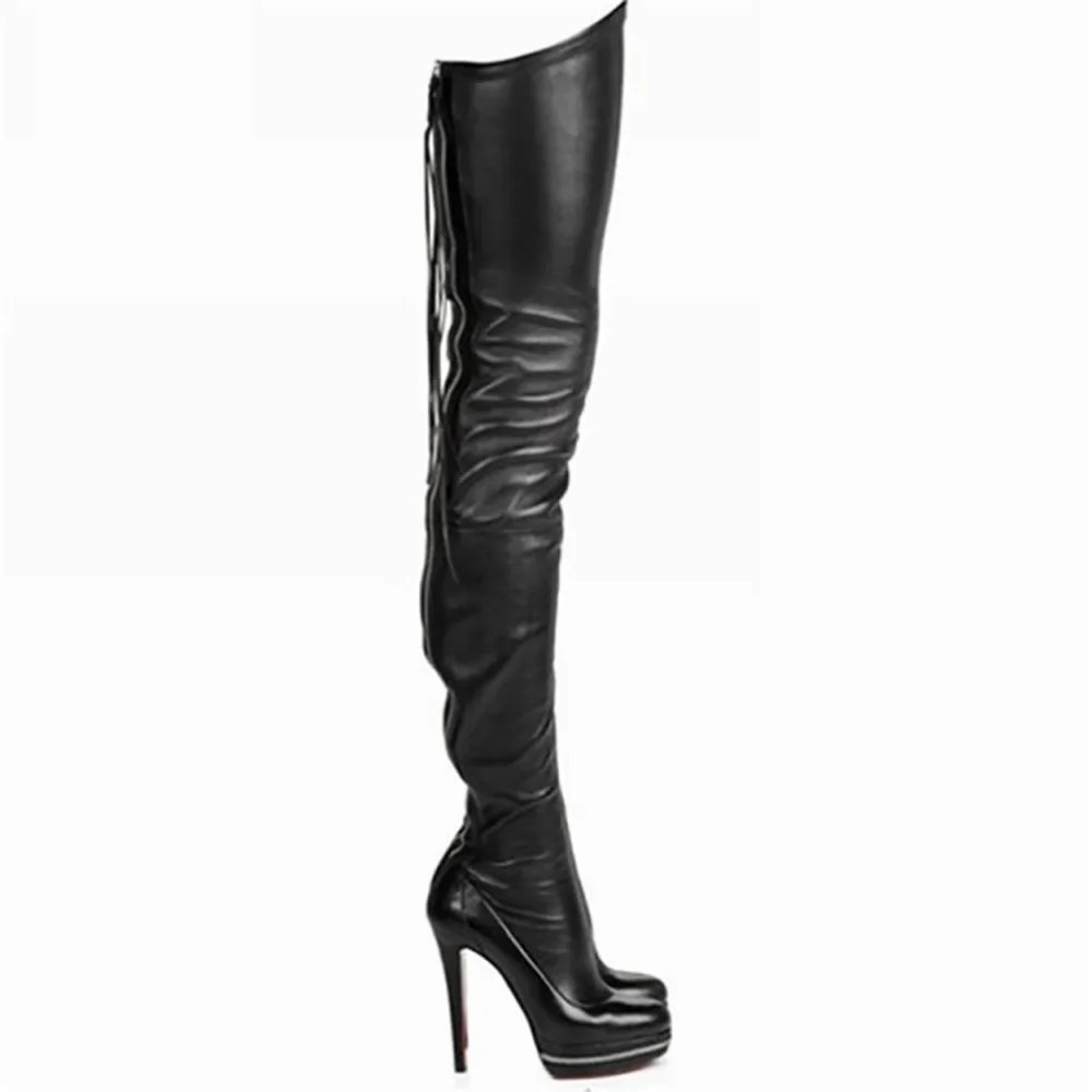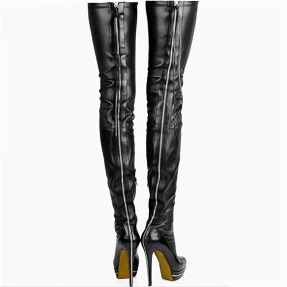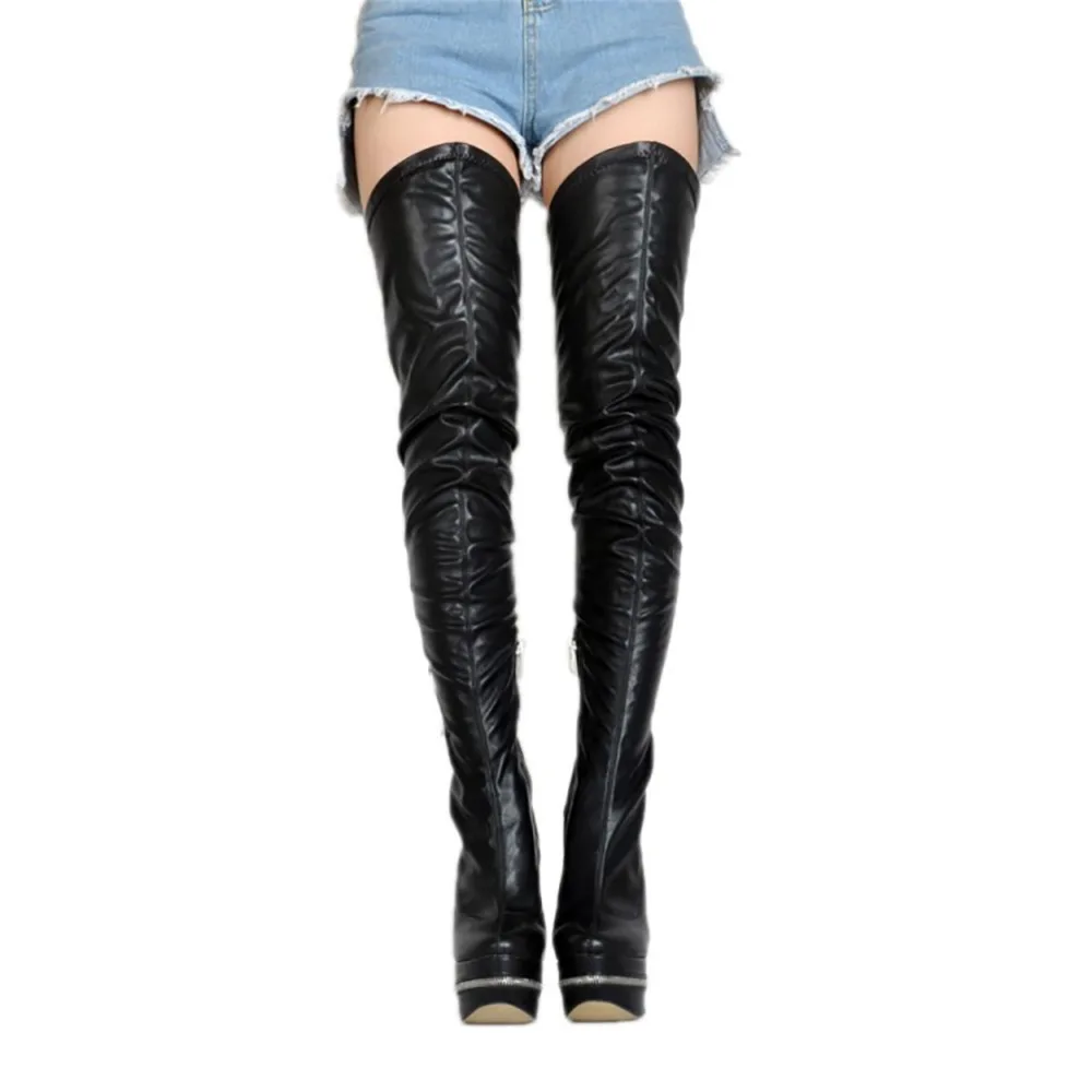 ASHIOFU Handmade New Womens Thigh Heel Boots Over Knee Boots Evening Winter