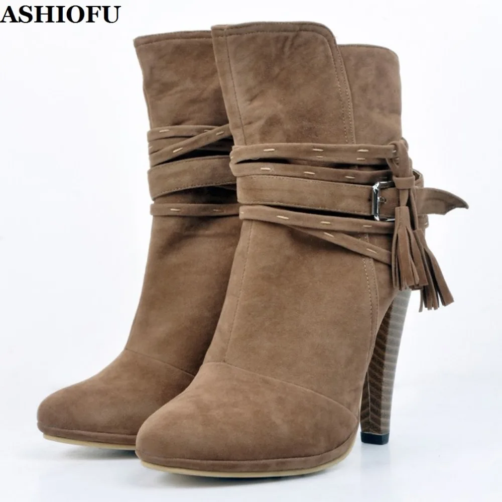 ASHIOFU Handmade Retro Women’s High Heel Boots Shoelace Party Prom Winter Ankle Boots Female Large Size Evening Fashion Boots